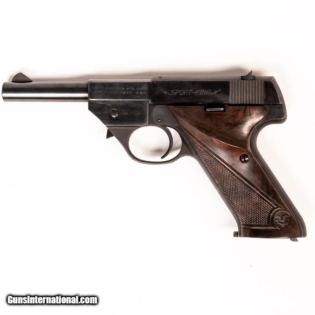 Description: Guns Listing ID: 457919 The High Standard Sport King is a vintage semi-automatic rimfire handgun. High Standard was known for their phenomenal target .22‚‚s that were exceptionally accurate, well-made, and surprisingly affordable. If you‚‚re looking for a recreational shooter, plinker, or target pistol, this is a great buy. This handgun has one 10-round magazin SOLD Manufacturer: HI-STANDARD Model: RD SPORT KING Caliber Info: .22 LR Condition: Used - Non-Certified Barrels: 4.5 BARREL Finish: BLUE |