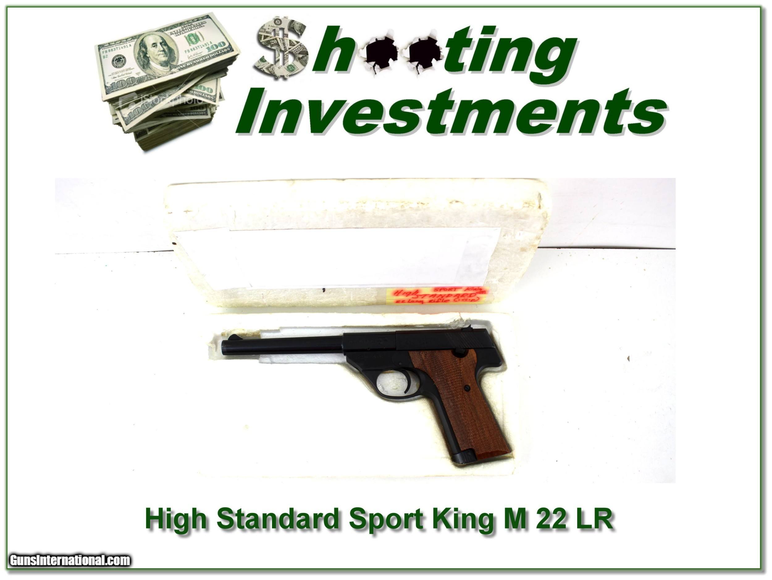 Description: Collectors, this is a like new condition High Standard Sport Kin 22LR. If fired, I can’t tell. It has a 6.75in barrel and comes in Styrofoam sleeve as seen. It will make a find addition to your collection! I am selling this one on consignment and as such lay-a-way can’t be used. It does of course have the standard 3-day inspection. Shipping and insurance is $39. Please email me with any questions or larger pictures. (Consign your quality firearms with Shooting Investments for only 12%! Let me know if you have any you would like to sell!) 22-1087 Payment: Payment is by Money Order, Cashiers Check or Personal Check. I can now also accept Credit Cards (MasterCard, Visa, Discover & American Express) with a 3% convenience fee. Shipping: The shipping charge will be listed in each description. It is $49 for most long guns. Some heavy guns, over 48in boxes or those insured for over $2000 will be higher. Shipments to Alaska and Hawaii are higher because air shipment is required. Most firearms are shipped on Tuesday and Thursday and usually in 5 days of receipt of payment. We package all shipments carefully and insure them. Optics are shipped Priority Mail and most other non-firearm shipments are shipped First Class. Returns: Our return policy is simple. If for any reason you are not pleased with your purchase, you may return your item for a full refund of purchase price. Ammunition cannot be returned. It is important to us that you are happy. Guns cannot be fired or dissembled before returning them and they must be returned in the same condition as received. Notification of a return must occur with-in 3 days of receipt at your dealer. Shipping, convenience and dealer fees are not refundable and are the responsibility of the buyer. Lay-a-way: If needed, we offer a 60 day lay-a-way option on most firearms. It is 1/3 now, 1/3 in 30 days and 1/3 in 60 days. Lay-a-way firearm sales are final and if not completed the first payment cannot be returned. Consigning your firearms with Shooting Investments: We will help you get top dollar for your firearms. While most local guns shops charge 20% or more, our fee is only 12% with a minimum of $75. At your local gun shop it might take months to sell. Selling on-line provides instant access to thousands of interested buyers. You won’t find any other on-line dealer willing to sell your firearms for only 12% or listing every gun on 3 separate s. Selling through an House typically costs the seller 15% and the buyer an addition 15% (so 30%) and you have to wait several months to sell and longer to receive funds. If properly priced, we will sell your firearms in a few weeks. Send us an email or give us a call and we’ll explain how easy it is for you to get top dollar. Trading: Trading for use is really just buying your gun to re-sell. If you have a gun you want to trade, please email a picture and we will let you know what we can give or it. You will always get more if we sell it for you on consignment. Help for California Buyers: We are happy to ship to California. It is the buyer’s responsibility to make sure any item you buy is legal in your state. We are also happy to help with your purchase of a firearm from someone other than us. If you see a gun you would like to buy but the seller can’t or won’t ship to California they can ship to use and we’ll then ship it to your California dealer. The cost for this service is only $30 + shipping. Let us know if we can help! SOLD |