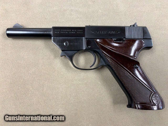 Description: Just in from an estate is this wonderful High Standard Sport King .22lr Pisto, with factory grips and magazine in better than excellent original condition. Bore and chamber are perfect. Looks to have seen very little use - probably spent most of its life in a dresser drawer. SOLD Handgun Caliber: .22 Long Rifle |