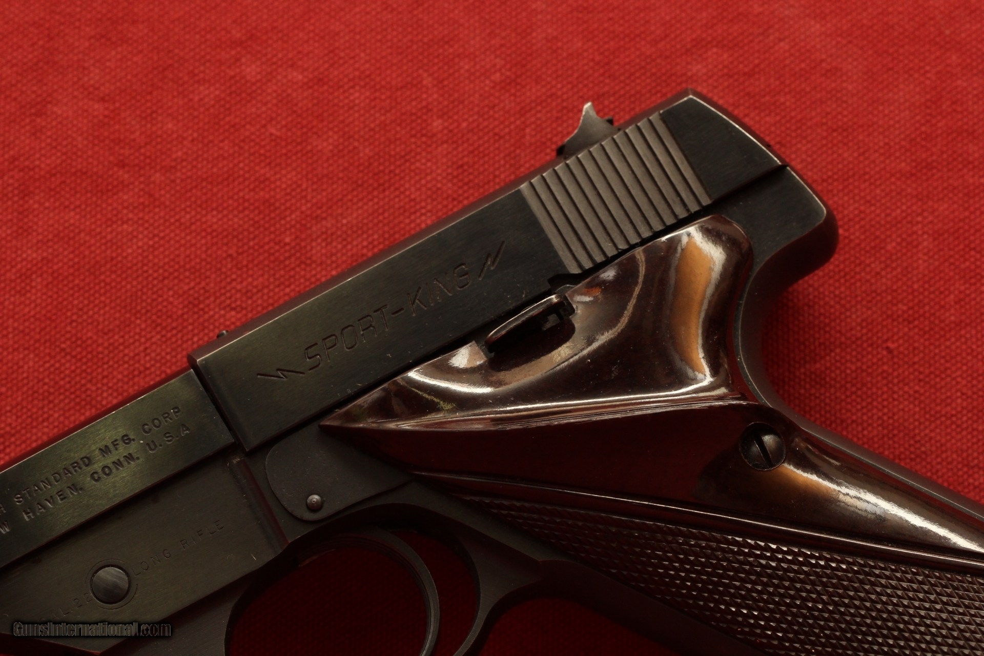 Description: 22lr, serial number 3990XX. Made in New Haven Ct. 4.5" barrel. Overall in good condition, shows normal wear. Metal shows wear on sharp edges and muzzle. Light handling marrs on top of slide, barrel and back of grip frame. Bore is excellent. Grips are in very good condition, light wear on sharp edges. No chips or cracks. More photos on request. Please add $35.00 for shipping and insurance. SOLD AS-IS, NO RETURNS. SOLD |