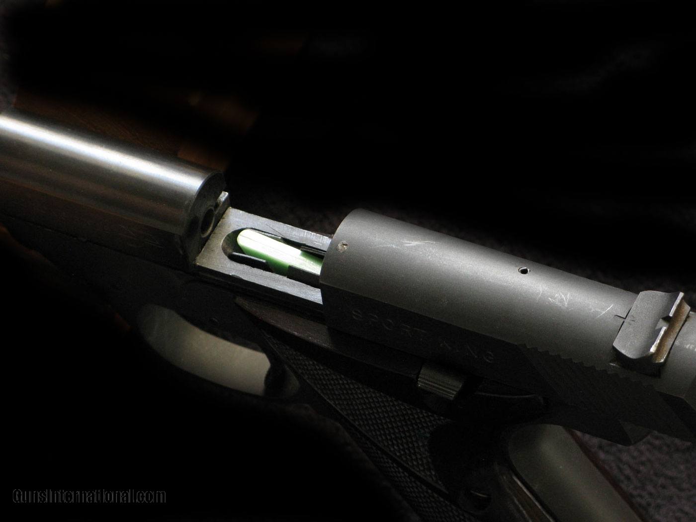 Description: Nice heft, as new condition fired very little if at all, as new condition no box. With plastic grips/brass medallion, driftable rear sight, one mag. Very crisp light trigger. SOLD |