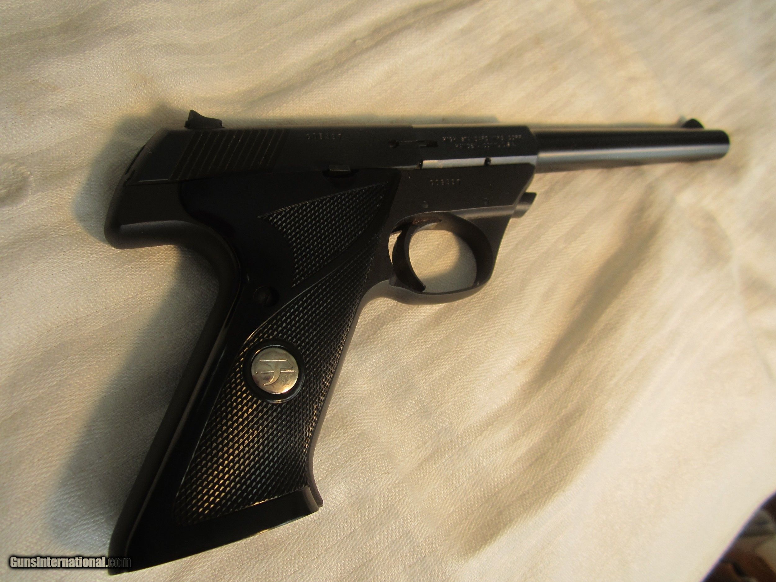 Description: Made in 1976 and in MINT condition, just about 100%. The dark brown plastic grips with High Standard medalions set in each are also "as new". It is in .22LR caliber, has a 6 & 3/4" barrel and a push button take down system. The metal has a polished blue finish combined with a dull finish on certain parts. The pistol has a slant grip. Included is the original box (in 98% condition) with the styrofoam insert, 2 extra magazines ( a total of 3 ), and a soft zip up case. This pistol could be unfired. High Standards are very well made, are very collectable , hold their value well AND seem to go up in value every year! A High Standard pistol is fun to shoot and an investment as well. A NO interest payment plan is available See more High Standard , antique pistols, swords, etc. under "ROMSEY". These pistols are a great investment as well as fun to shoot. These items also make unique gifts. SOLD Manufacturer: High Standard Mfg. Corp., Hamden, Conn. USA Model: SPORT KING Serial Number: G05297 Barrel Length: 6 & 3/4 Caliber Info: .22LR Bore: rifled Condition: MINT Metal Condition: MINT Wood Condition: GRIPS- MINT Bore Condition: bright/shiney as new Barrels: one Barrel Type: round Action: semi-automatic Triggers: one Stock: brown plastic grips Finish: Blued Sights: front & rear Manufacture Date: 1976 Engraving: none Extras: 3 magazines in total + BOX Case: soft zip up case Item Location: San Diego,California, |