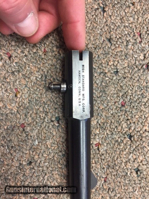 Description: High Standard Sport King Model 103 .22LR with 4 1/2" and 6 3/4" Barrels and Box. Unsure if box is original to the pistol, as the area where the serial njumber was on the box is torn off. Box in rough shape, held together with tape. Some finish wear, especially on the area where the hand gripped it. Some small chips to the plastic grips. One magazine. Pistol marked "AM" or January 1969, and the extra barrel is marked "EL" or May of 1969. Unsure if this was a "combination gun" from the factory. A great shooter, please see photos. We accept credit cards at an additional 3%. Shipping $30. Patak-Phillips Fine Arms. SOLD Manufacturer: High Standard Model: 103 Sport King Serial Number: 2060432 Caliber Info: .22lr |
