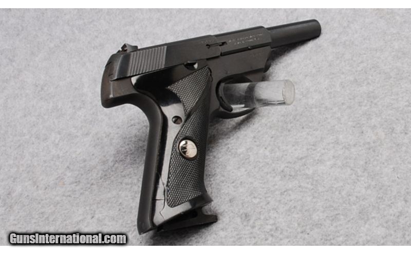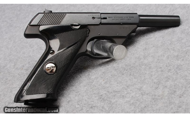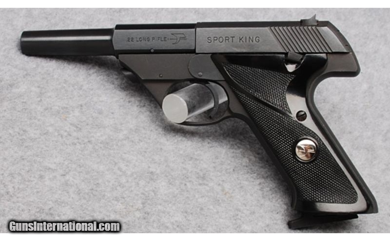 Description: This is a High Standard Sport King Pistol in .22 Long Rifle. The pistol is in Very Good to Excellent condition with a shiny bore. The right side grip panel has a crack at the lower rear. The front sight is missing on this pistol. SOLD Caliber Info: .22 Long Rifle Metal Condition: Very Good to Excellent Bore Condition: Bright and shiny Barrels: 4 1/2 Sights: Fixed Rear Sight, no Front sight Extras: NO FRONT SIGHT. Crack in right side grip panel. Item Location: Rapid City, SD |