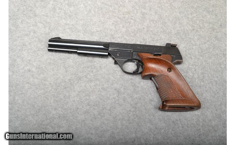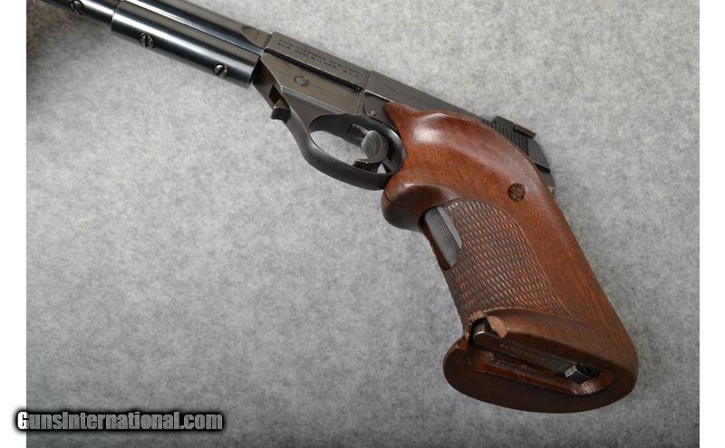 Description: The highly accurate supermatic can be yours! There is a crack and missing wood on the front side of grips. However, this gun is still fully functional and highly dependable on the range. .22 Long Rifle SOLD Chambers: .22 LR Metal Condition: Good with signs of wear Bore Condition: Good Barrels: 6.5 Butt Pad: Crack and chipped on front side of grips Weight: 3 lb Item Location: Columbus, OH |