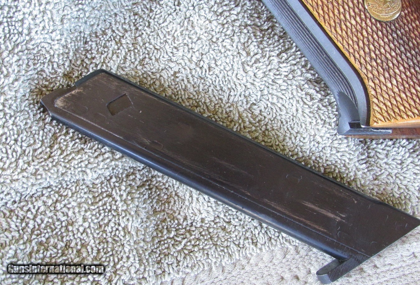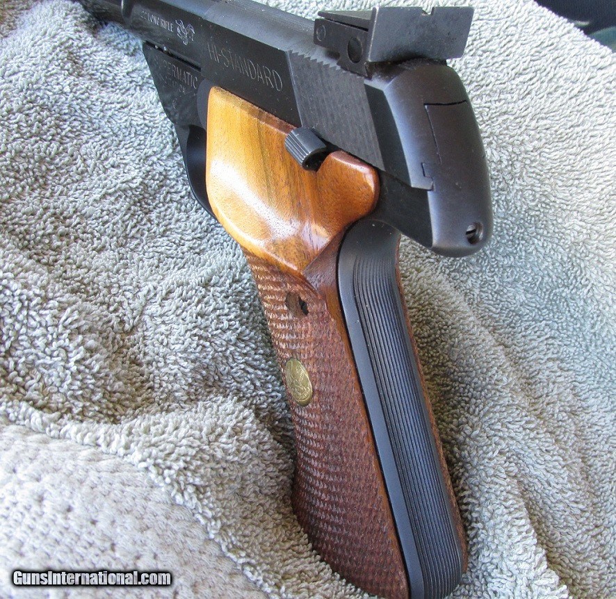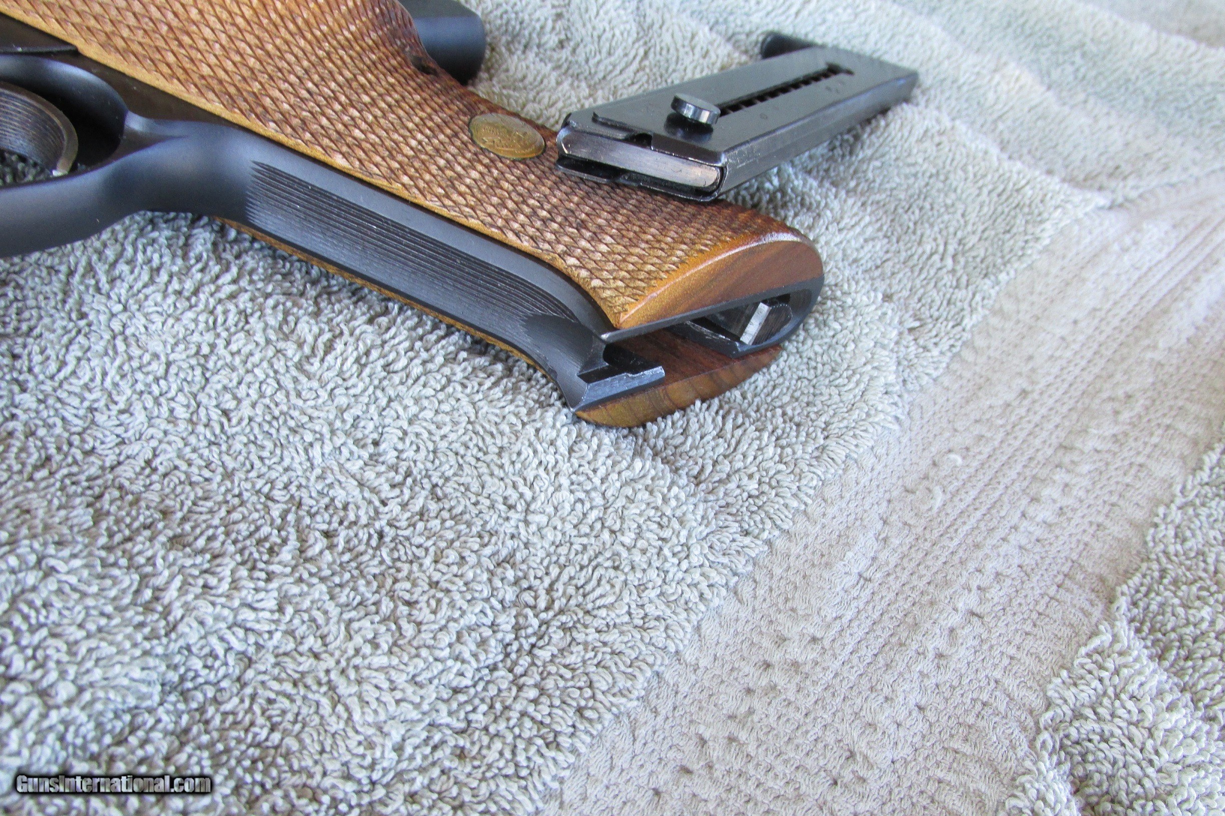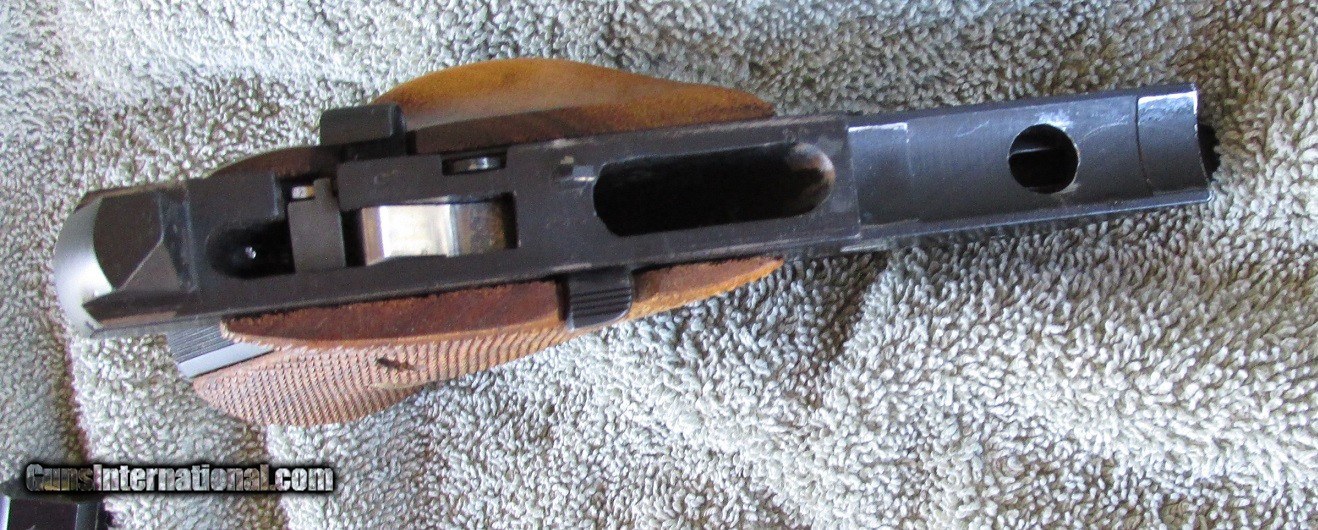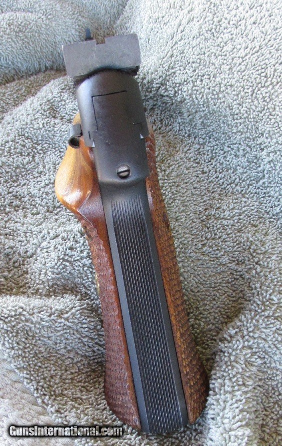 Description: SOLD Have a beautiful High Standard (Hamden) 103 Standard grip Citation with 5.5" barrel. The gun is 98% condition, would be 99%+ except for a tiny scratch on the barrel muzzle (NOT the crown). I am a private seller, a gun collector and enthuiast not a flipper. I have owned this pistol since the early 1990's, back when I was activly collecting High Standard pistols. I have fired it twice- once back when I purchased it, once recently to verify function, still perfect. This High Standard model 103 was made in the Hamden factory, around 1962, before the Leisure Group purchased HS, after which quality began to slide. The gun has a small light spot on the bottom of the barrel and tiny ding on the front of the barrel, one very light scratch on left side of frame inside the letter "U" of Supermatic (cant't get an image of it), these are the only negatives. Not sure of a round count, I doubt more than 300-400 rounds. Back when I was an avid collector of these pistols, this one became best of the last I have left; about the best of the best I have owned on production quality and existing condition. Sorry, no box or papers. Bore is mirror bright, gun has no trashed screw slots, no rust, no damage. The walnut thumb rest checkered grips are without chips and cracks, and the back surfaces are still dry and not oil soaked. Rear sight is fully adjustable for windage and elevation. Magazine is the correct early factory type with METAL follower, original to this gun. The gun feeds fine, never had any jams. Super nice clean, very lightly fired HS CItation 103, fully adjustable trigger for weight and over travel with the single slot screw on the right side of the frame.The gun has never had a weight on it, all plug screws are present, and has never had a compensator on it. I am not an FFL, gun will ship with my AZ ID. Contact me if must ship from a FFL dealer. No ship to States where not legal. Shipping: $40.00 to the first 48 SOLD Curio/Relic: Yes Handgun Caliber: .22 Long Rifle Manufacturer: High Standard Model: 103 Citation Serial Number: 1329552 Barrel Length: 5.5 Bore: Bright Crisp Condition: Excellent 98% Metal Condition: 98% Wood Condition: 99% Bore Condition: 98% Barrel Type: Bull Action: Semi Auto Finish: Blued Sights: Adjustable Rear Manufacture Date: 1962 Extras: One Factory Original Magazine Item Location: Arizona |