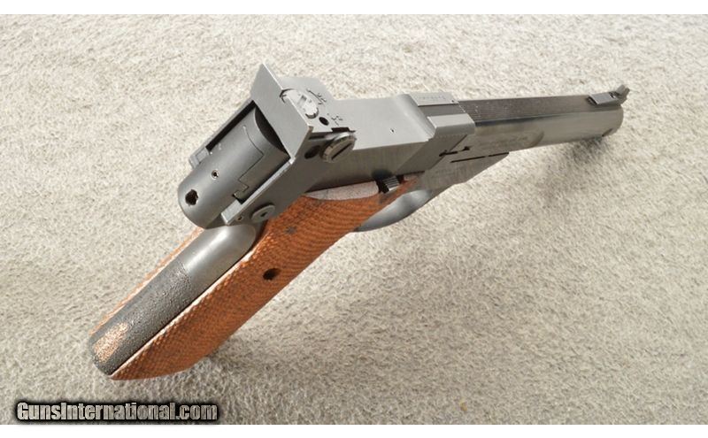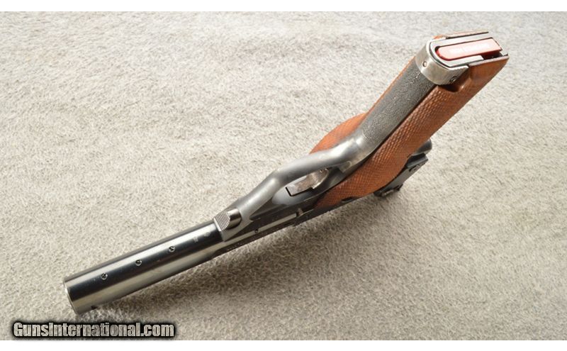 Description: Lightly used High Standard Supermatic Citation chambered in 22lr. The barrel is marked " Manufactured in Hamden, Conn". The fame is marked "Supermatic Citation, Model 106 Military". Features checkered walnut grips, 5.5' bull barrel, stippled front and backstrap with a golden bullet marking on the backstrap, adjustable spot trigger. .22 Long Rifle SOLD Chambers: Semi auto. Metal Condition: "90%, Minor handling marks that would consistent with light use. Wood Condition: Excellent walnut grips panels. Bore Condition: Strong and bright. Barrels: 5.5 Bull barrel. Triggers: Single action. Weight: 3 lbs Sights: "Fixed blade front, adjustable rear. Item Location: Owatonna, MN |