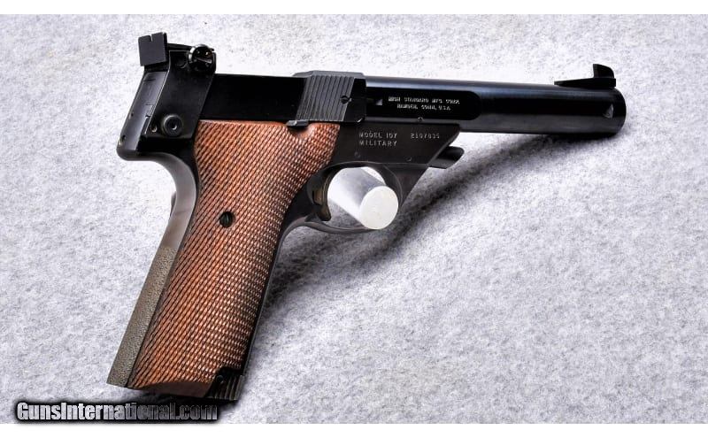 Description: Model 107 Military .22 Long Rifle SOLD Metal Condition: Excellent Wood Condition: Excellent Bore Condition: Bright and Shiny Barrels: 5 1/2 Inches Weight: 3 lbs Item Location: Reno |