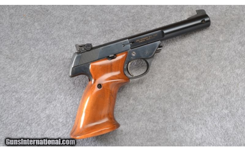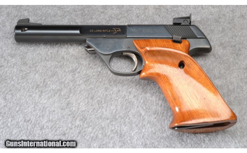 Description: Shows a couple light scuff ins the blue on the left side of the slide. Remainder is excellent throughout. No box. SOLD Manufacturer: S/N 114XXXX Caliber Info: .22 LR Metal Condition: Very Good Wood Condition: Excellent Bore Condition: Excellent Barrels: 5 1/2" Heavy Target Triggers: Factory Stock: Uncheckered Walnut with Right Hand Thumbrest Weight: 48 OZ Sights: Patridge Front - Adjustable Notch Rear Item Location: Wheeling, WV |