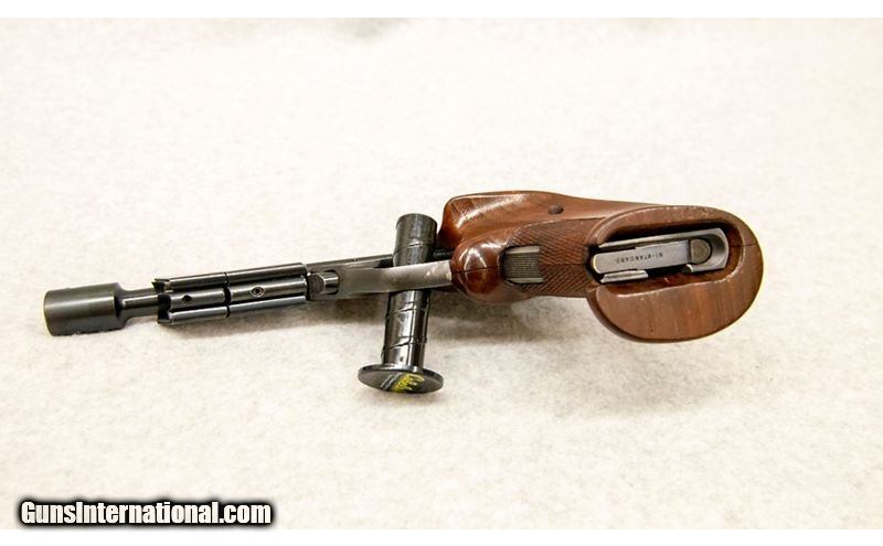 Description: High Standard Supermatic Citation, chambered in .22 LR, with a 9 round magazine. Features include: 7 1/4 in. barrel, matte blue finish, open sights. Comes with barrel weights attached, and is fitted with checkered military grips. Bluing is all there and grips are in great condition despite some scuff marks. .22 Long Rifle SOLD Chambers: .22 LR Metal Condition: Very Good Wood Condition: Very Good Bore Condition: Very Good Barrels: 7 1/4' Sights: Adjustable Rear Item Location: Fort Mill, SC |