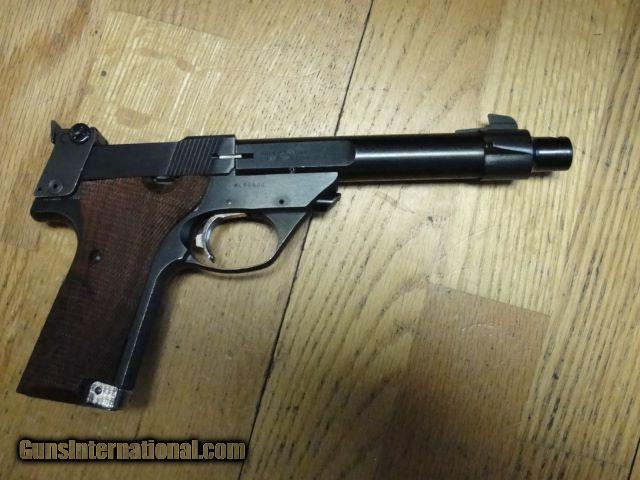 Description: High Standard target model Supermatic Citation. 5 1/2" heavy target barrel with muzzle break (removable). 22 long rifle chamber. Gun is in very good condition, with slight blue wear. There is one small scratch on blue on top of barrel (see photo). Grips are still sharp, there is one small scratch on left grip pannel just above magazine latch. 2 magazines SOLD Manufacturer: HIGH STANDARD Model: CITATION |