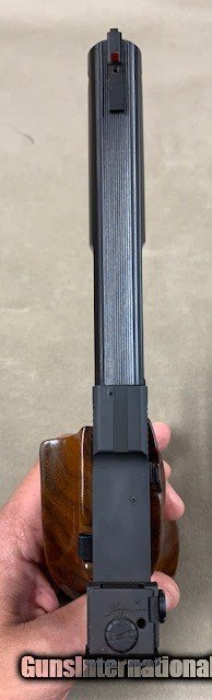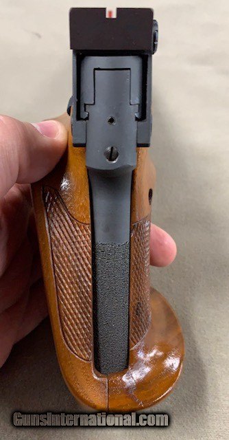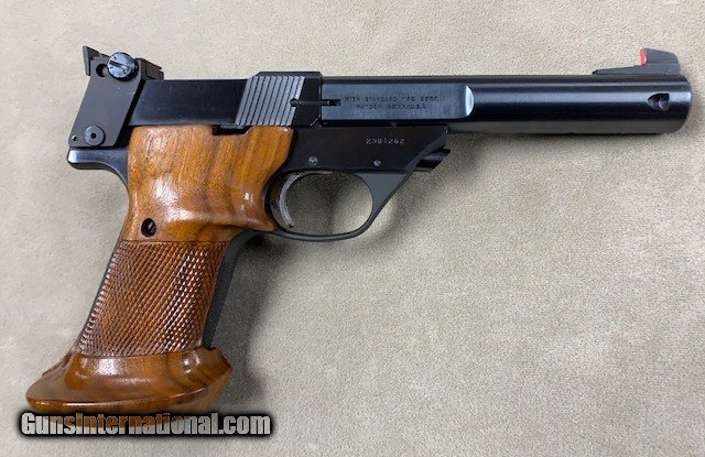 Description: A near mint condition High Standard Supermatic Citation 5.5 inch Target Pistol as manufactured in Hamden Conn and equipped with factory walnut target grips (right handed). From a condition perspective it appears this pistol has been fired very little, with almost no marking or wear to the bolt face area and a perfect bore and chamber. These fine pistols, along with the Smith & Wesson model 41 dominated target shooting back in the 1960's and it is easy to see why. Just a wonderful .22 Target Pistol. SOLD Curio/Relic: Yes Handgun Caliber: .22 Long Rifle |