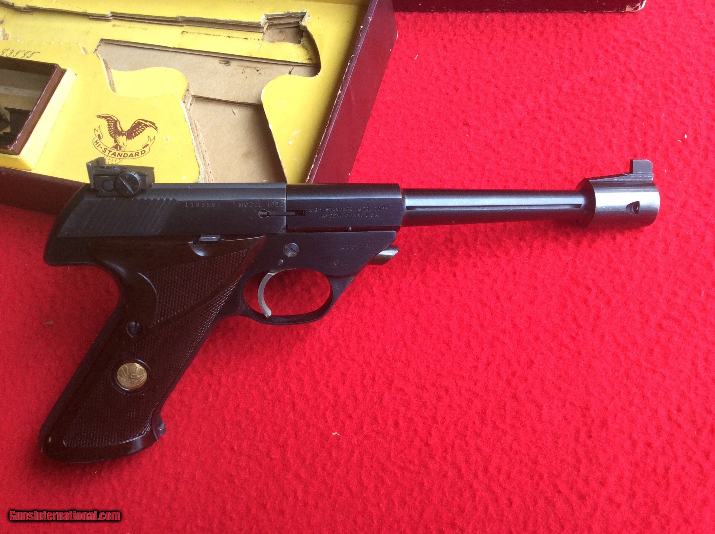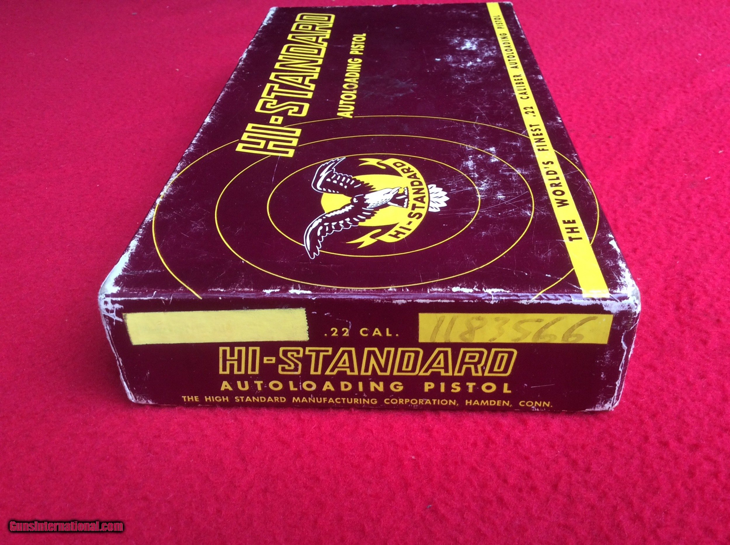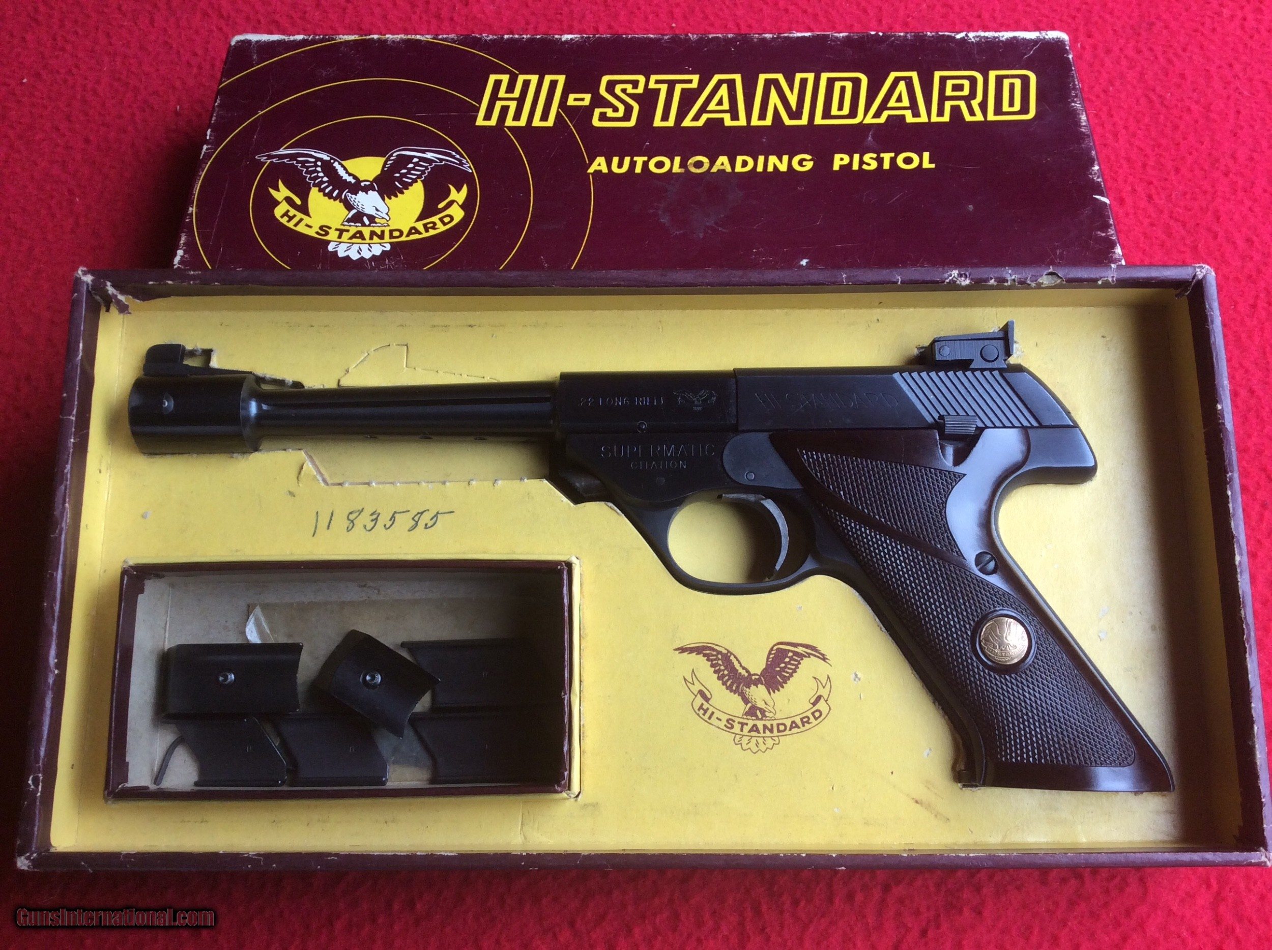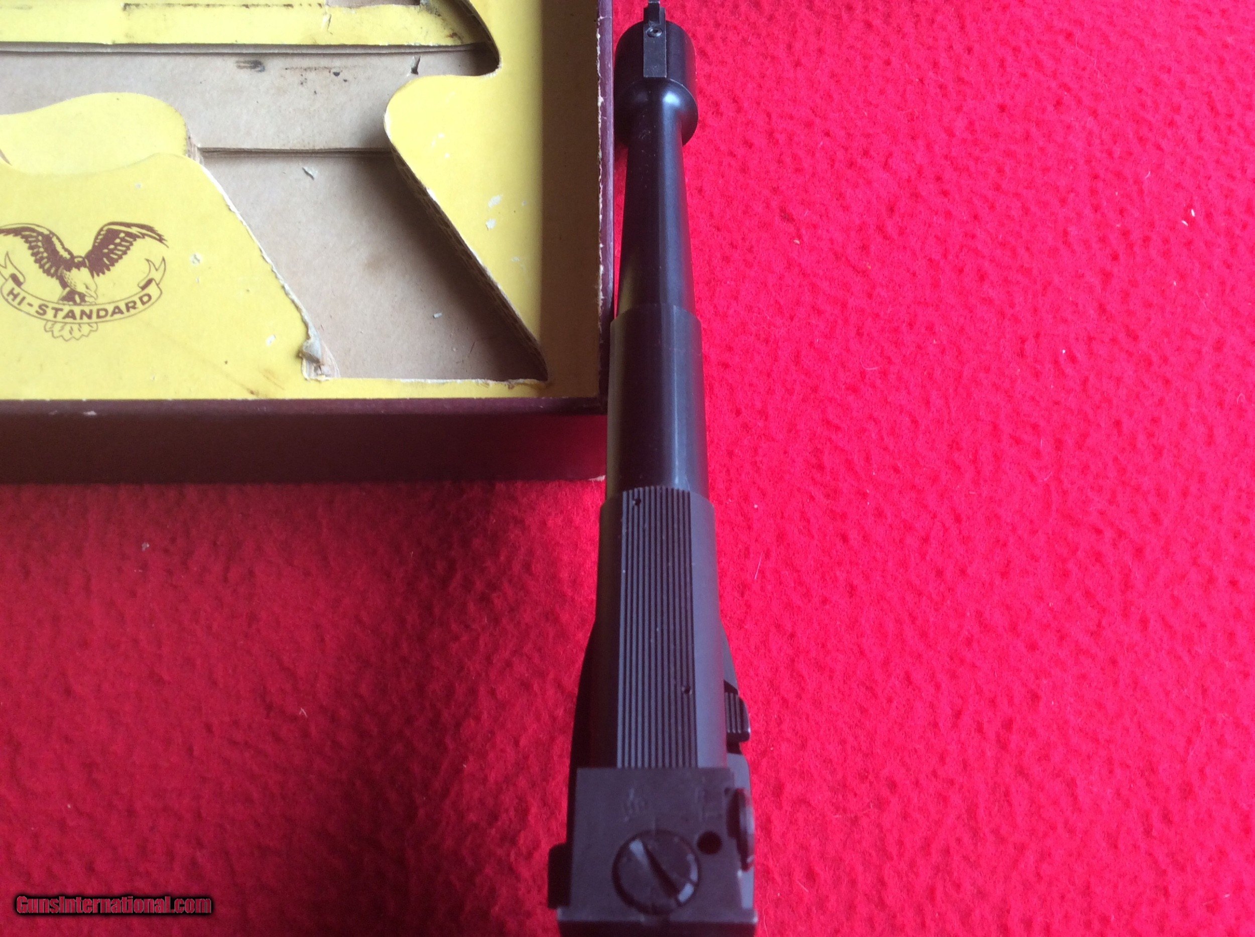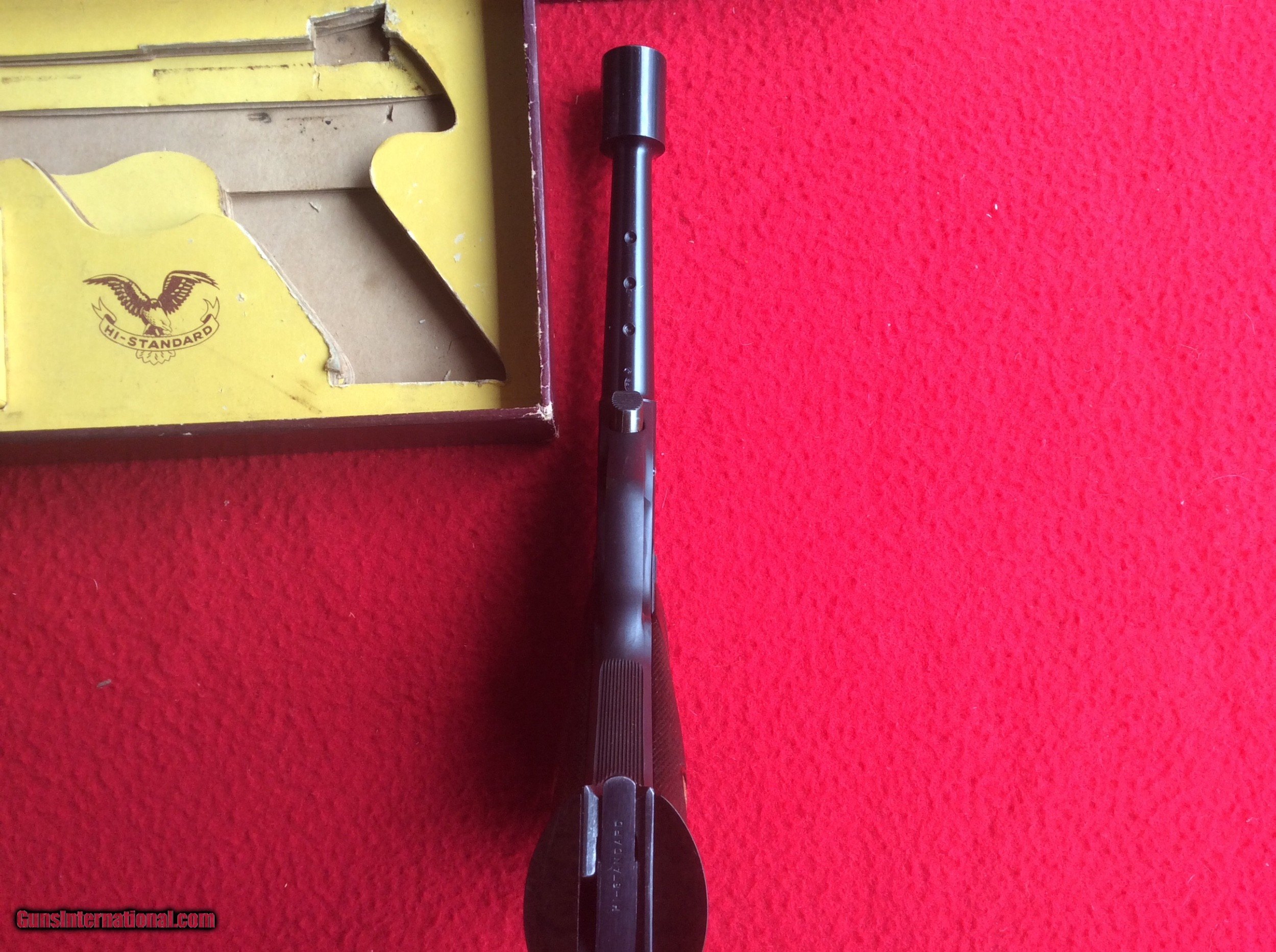 Description: SALE PENDING For sale is a very nice 97% condition High Standard Supermatic Citation made in Hamdon Conn. 6” barral. Pistol in excellent condition with the weights. It’s ironic, as the serial number on the pistol is 1183xxx and the serial number on the box is slightly higher then the pistol. In essence somewhere in the past when this pistol was new it got mixed up and put in the wrong box. This could of happened at the factory, or at first wholesaler, or first retailer. Only the pistol knows for sure. This is a very good clean supermatic citatiuon pistol. call for more info. Etc. Thanks for looking SOLD |