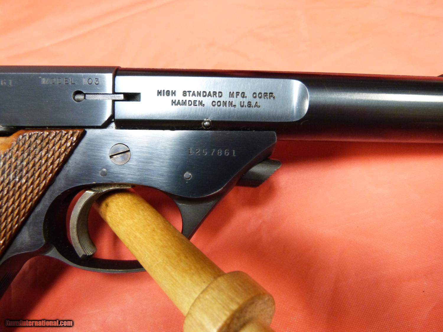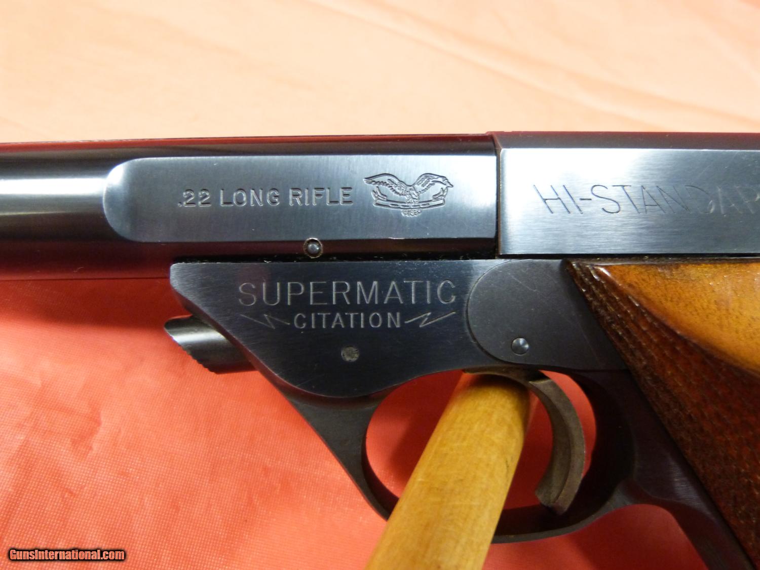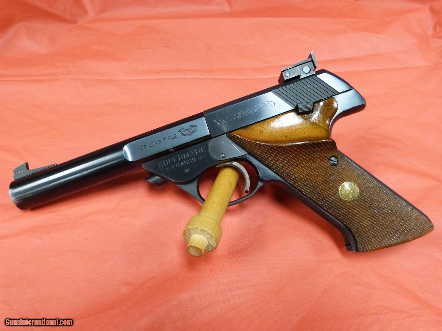 Description: High Standard's Supermatic Citation M-103, .22, 5 1/2" Bbl., 95% finish showing only slight holster wear. Has not been shot alot.Only $595.00 (CC+3%) Shipping $25.00 SOLD |