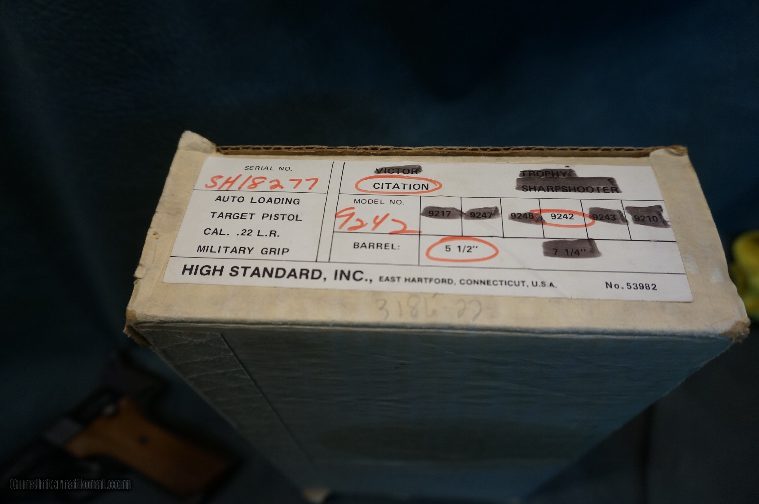 Description: Hi Standard Supermatic Citation 22LR 5 1/2" barrel,excellent condition with the box and papers. GUN COLLECTIONS WANTED FOR CASH! We buy, sell, consign and trade new and used firearms. This is our 44th year in business. We offer 90 day layaways with 20% down. No return on layaways. Firearms will need to be transferred through a FFL dealer. Prices reflect a cash discount. There will be 3% added to credit card sales. We trade for gold and silver. THANK YOU! SOLD |