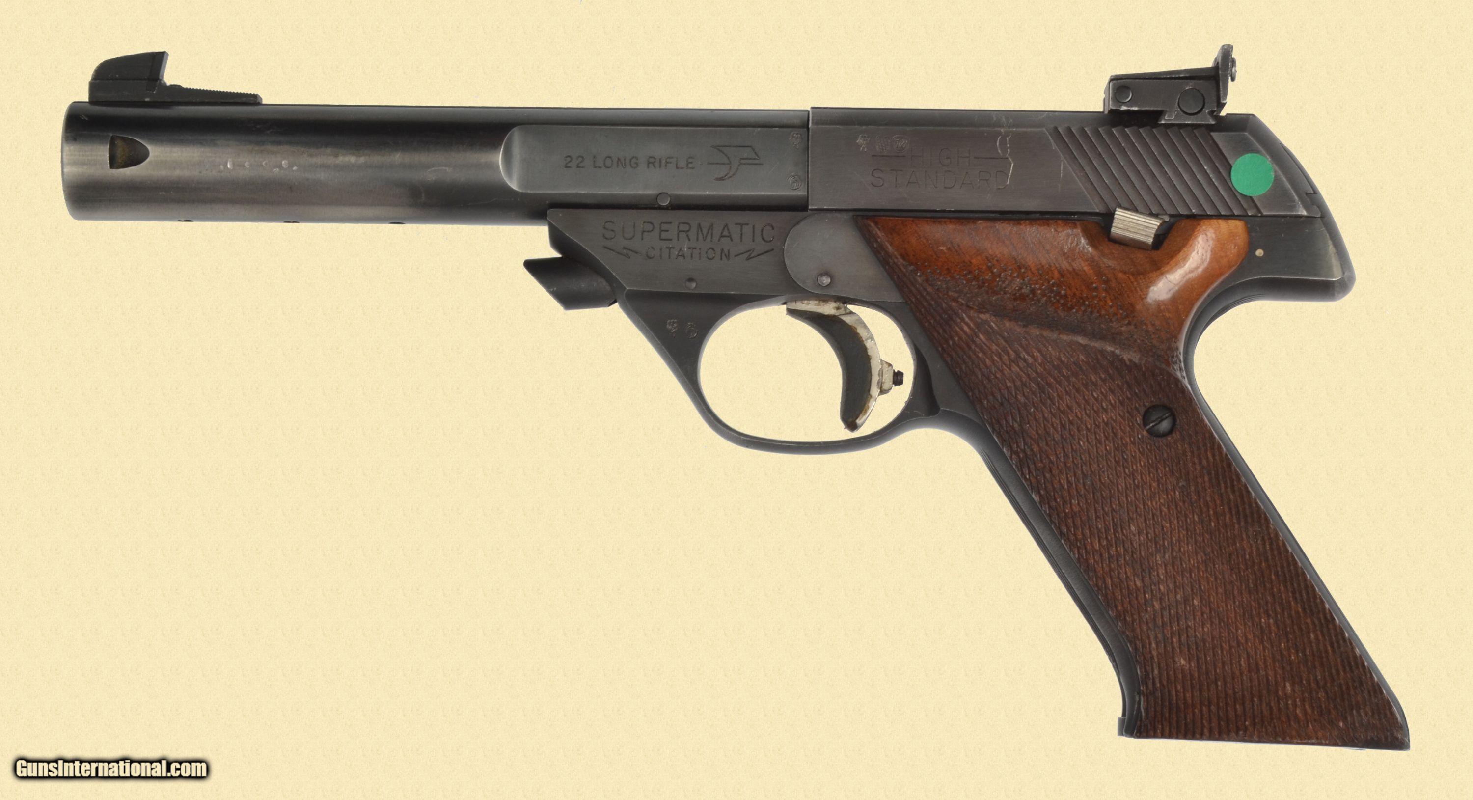 Description: 22 Long Rifle; 75% blue, very good bore, very good grips, 5.5'' barrel, Bluing on the barrel is thinning. Right side of the barrel has .22 Long Rifle. Frame has High Standard - SUPERMATIC over CITATION. Along with three INSP. Marks. The right has the serial number on the frame. The barrel has High Standard Mfg. Corp over East hartford Conn. U.S.A. FEDERAL FIREARMS LICENSE (FFL): is required on all shipments of modern guns. We must wait for a copy from your dealer before we can ship to them. We will also ship C&R eligible firearms to Curio and Relic (C&R) license holders. We accept your signed, legible FFL and C&R licenses via fax at 309/ 342-5730 (always on), email at FFLsimpsonltd or through the mail at Simpson Ltd; 140 S Seminary St; Galesburg, IL 61401. Pre-1898 firearms and non-firearms items are exempt from licensing requirements. All items shipped to an Illinois address will be charged 8.75% sales tax. NOTE: Because of recent shipping restrictions and charges placed on us by UPS and FedEx (handguns must ship via next day or 2nd day air and they have added a $10 surcharge for parcels over 48”. Our return policy lasts a maximum of 3 days from the time you receive your item. If 3 days have passed since you received your purchase, and we have not been contacted by you, unfortunately, we can’t offer you a refund or exchange. If you are not happy with your purchase, please contact us by phone and/or email to arrange for a return. Items must be shipped back to us to arrive with 7 days of notification of return. SOLD Serial Number: G20043 |