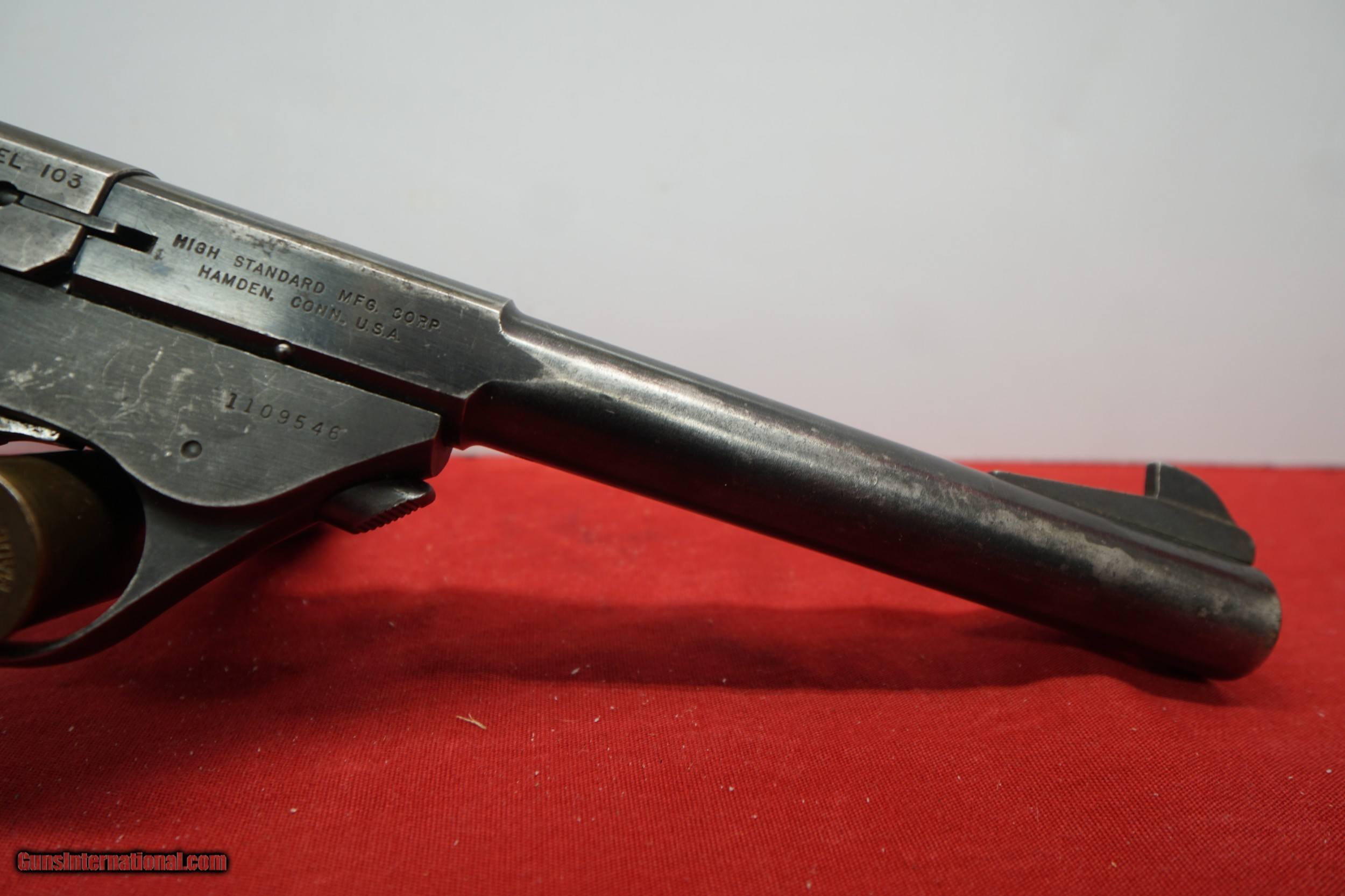 Description: Another great item from Gainesville Pawn! Up for sale is a High Standard model 103. This gun is chambered in .22 LR. This gun is in good conditionwith signs of wear present. Please not the broken pistol grip in the photos. Please see attached photos. *Please be aware that all items are sold “AS IS”. Ask questions BEFORE placing a bid. Feel free to call us at our store (352) 240-6452 or email us at Gainesvillepawn(at)gmail(dot)com with ANY questions. We do not accept trades or offers through through Guns International We only entertain trades and offers through our store. $35 shipping and handling. Insurance extra. We only accept USPS money orders and major credit cards for payment. 3% convenience fee for credit cards. WE collect Florida state sales tax for in state sales. Please be aware that this item is for sale in our store as well as the occasional gun show so it may be sold there at any time. We will not ship the item until you have your dealer/receiving store email us a signed copy of their FFL to gainesvillepawn(at)gmail(dot)com SOLD Rifle Caliber: .22 Long Rifle Manufacturer: Hi standard Model: 103 Serial Number: 1109546 Barrel Length: 6.75 inches Condition: Good Metal Condition: Good Wood Condition: Good Bore Condition: Good |