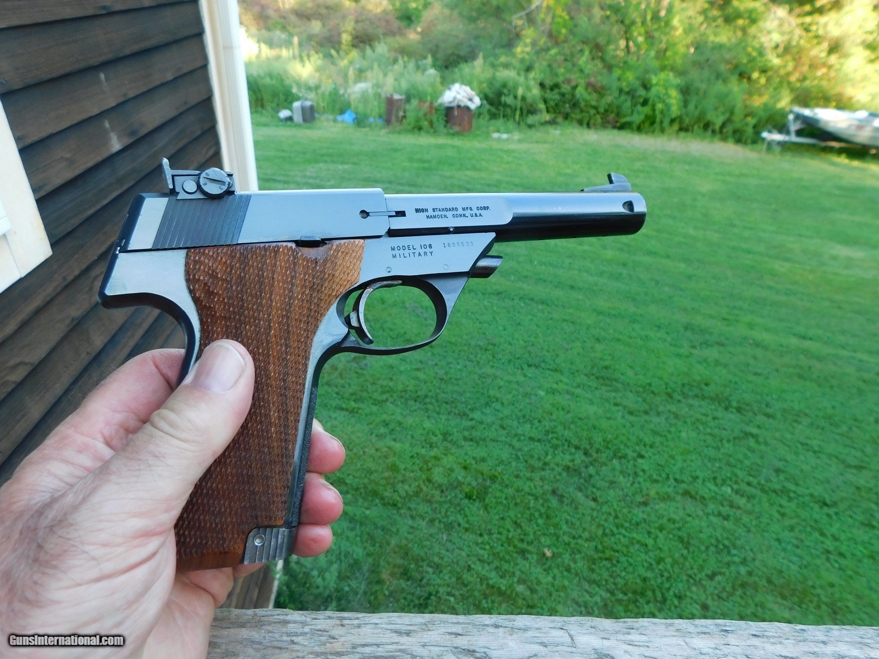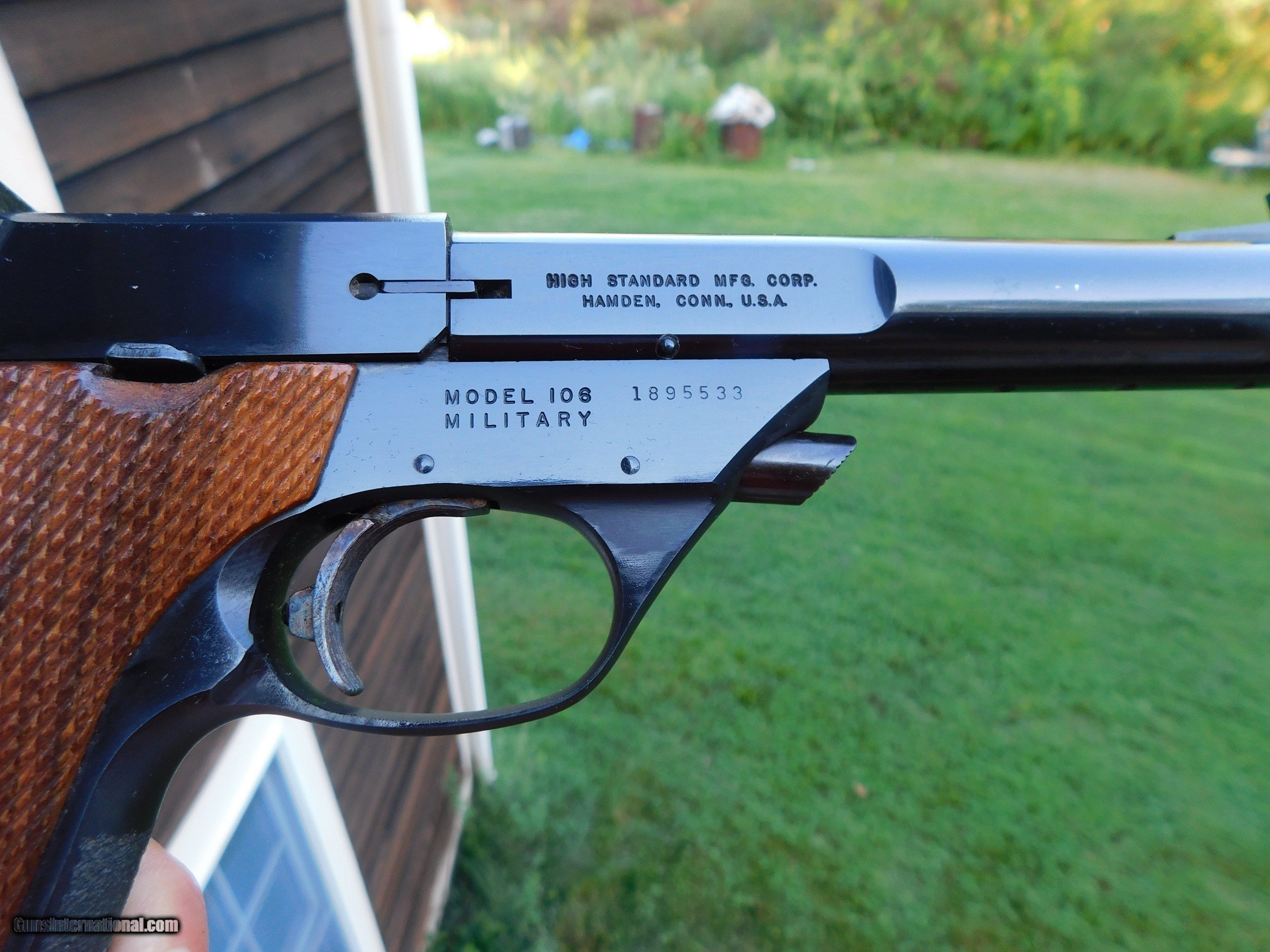 Description: SALE PENDING MONTE D. CO. 8/28/23 One of several guns that came to one of our friendly competiors from a large estate; this vintage very high quality Hamden Ct Made High Standard 22 target pistol (no one makes guns of this quality anymore that we are aware of. We own in our own collection many Colt Woodsman however to us these are far better guns (see our other unique High Stds. listed including one chambered in 22 short) This gun is in effectively new condtion and does not every appear to have been used or fired. We do not see a mark or scratch or any evidence of use. It does NOT have a box. Shipping is $ 29.00IF IT DOES NOT SAY ."SALE PENDING, UNDER DEPOSIT or ON HOLD"...IT IS AVAILABLE. WE DO NOT REPLY TO INQUIRIES THAT SAY "INTERESTED IN THIS GUN" OR "IS IT AVAILABLE" IF YOU WOULD LIKE TO BUY THIS OR ANY OF OUR GUNS WE SUGGEST YOU PHONE US; WE ARE OFTEN AVAIALABLE LONG HOURS. IF YOU ARE INTERSTED IN A GUN THAT IS UNDER DEPOSIT AND WOULD LIKE TO BE NOTIFIED IF A SIMILAR GUN COMES IN DROP US A LINE AND WE WILL MAKE EFFORTS TO CONTACT YOU WHEN ONE DOES COME IN. WE HAVE OVER 2000 SALES ON ALL SITES WITH AN A+ RATING ON ALL WE ALSO KEEP AN INVENTORY OF OLDER PERIOD CORRECT SCOPES; CALL WITH NEEDS WE MOSTLY PICK VERY CLEAN AND LIGHLTY USED GUNS. WE ARE HAPPY TO TAKE CONSIGNMENT GUNS AND COLLECTIONS OR WILL BUY YOURS OUTRIGHT. WE SOMETIMES ARE EMPLOYED FOR ESTATE PURPOSES AND VALUATIONS. AT THIS TIME WE ARE ONLY ACCEPTING US POSTAL MONEY ORDERS OR BANK CHECKS FOR PAYMENT IT IS THE BUYERS RESPONSIBILITY TO GET US A COPY OF YOUR RECEIVING FFL'S LIC AND A COPY OF YOUR PHOTO ID BEFORE THE GUN SHIPS YOU MUST CALL OR CONTACT YOUR FFL.WE DO NOT CALL FOR YOU UNLESS THEY RQUIRE IT. LAYAWAY PURCHASES NOT COMPLETED ON ANY RETURNED ITEM UNLESS NOT AS DESCRIBED OR DAMAGED ARE SUBJECT TO A 10% RELISTING/RESTOCKING FEE AND MUST BE RETURNED WITH NO NEW MARKS OR SCRATCHES, SENT BACK INSURED, PRIORITY SIGNATURE REQUIRED. ALL INFORMATION CONTAINED HEREIN IS BELIEVED TO BE ACCURATE BUT IS NOT GUARANTEED. WITH ANY OLDER OR USED GUN IT SHOULD BE INSPECTED BY A GUNSMITH PRIOR TO SHOOTING. SOLD |