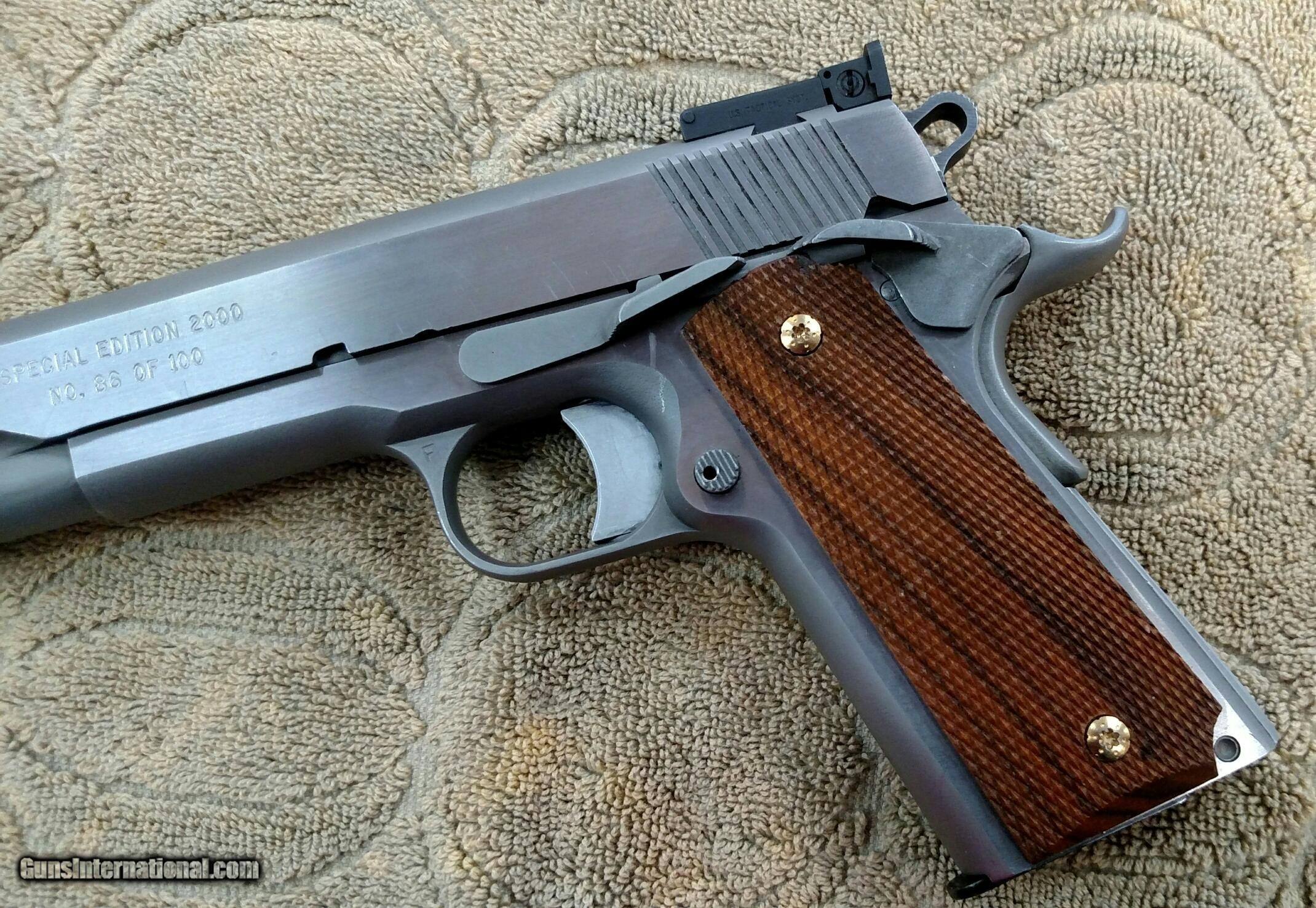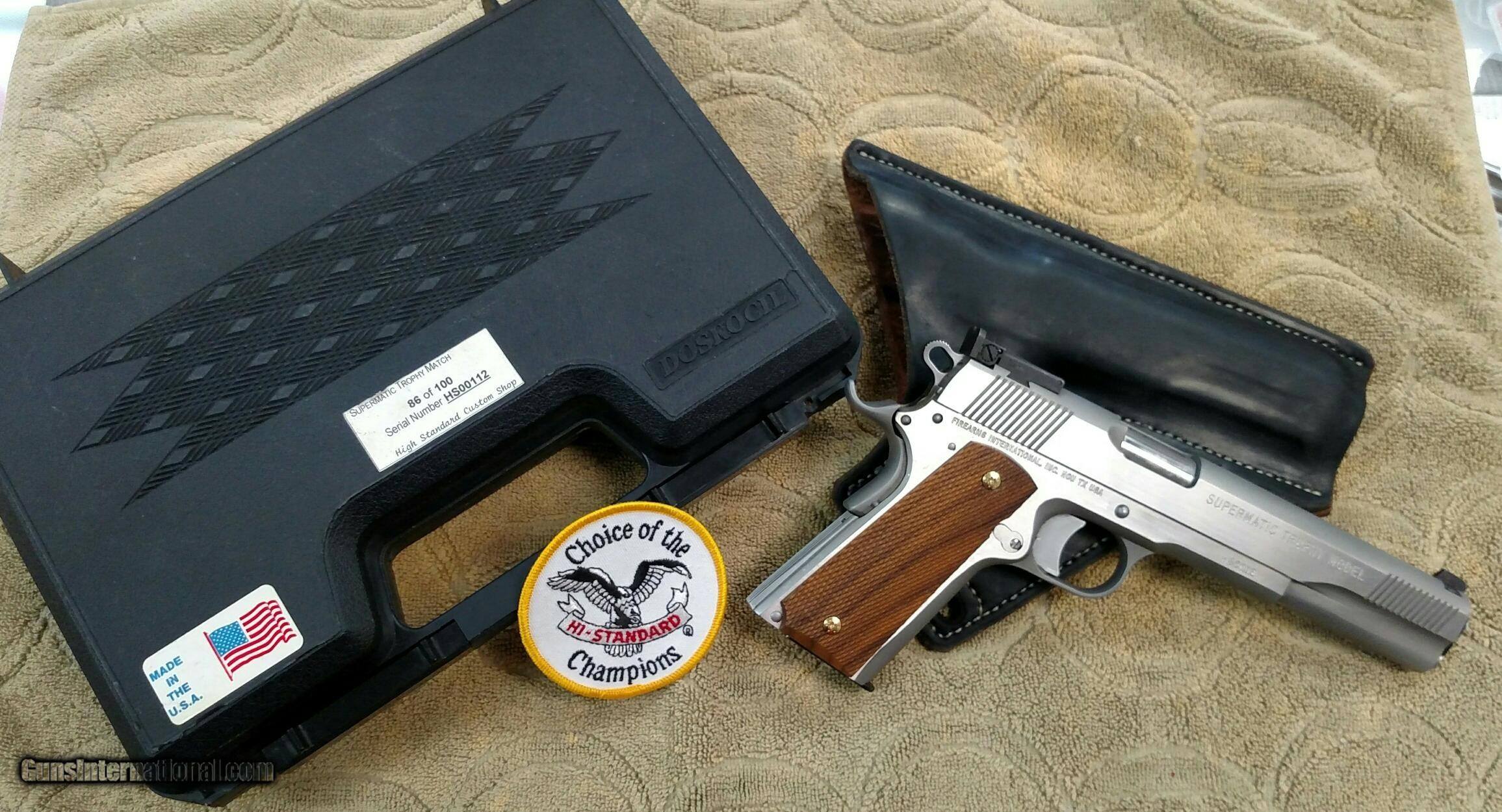 Description: This is an odd duck. The gun says Special Edition 2000 No. 86 of 100. The box is labeled High Standard Custom Shop. The pistol is also a long slide.....6". It also comes with a custom holster, branded patch and 2 High Standard labels mags. There is no paperwork. Please call or email with any questions. WE TAKE CREDIT CARDS, DEBIT CARDS, MONEY ORDERS, CASHIER CHECKS, OR EVEN PERSONAL CHECKS.........AS LONG AS THEY'RE GOOD! 3% will be added to all charge cards. GUNS WILL BE HELD UNTIL PERSONAL CHECKS CLEAR. GUNS SUBJECT TO PRIOR SALE. There is a $30 shipping charge per gun and is NOT refundable. Insurance may be extra. Thank you, Darryl Howard SOLD |