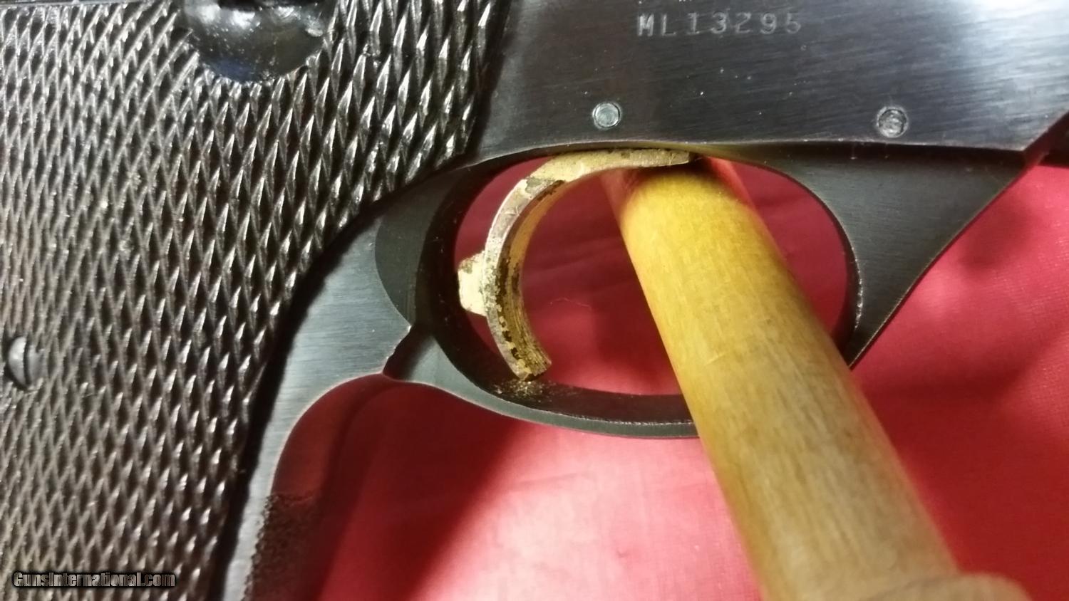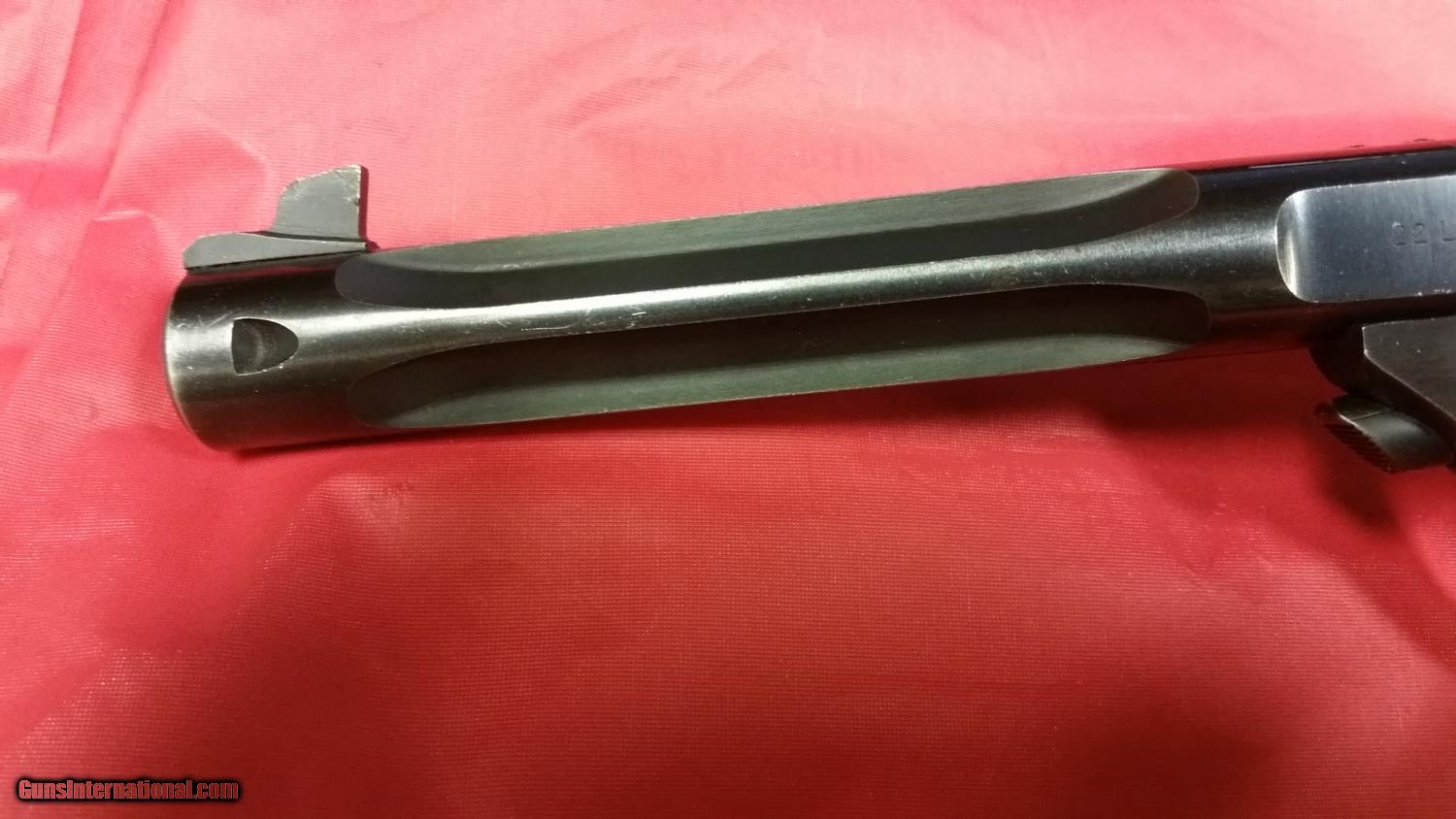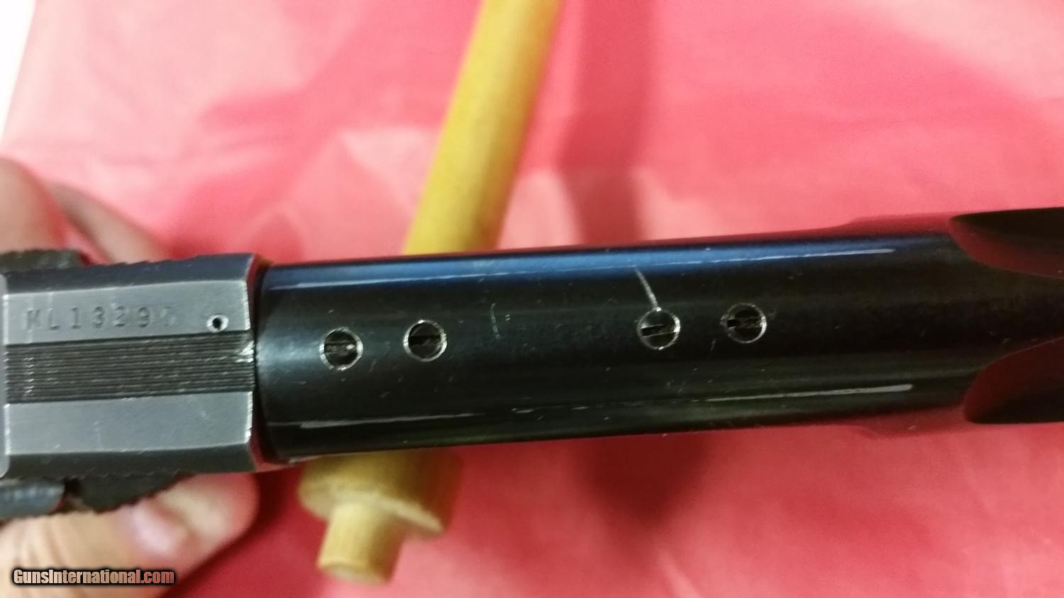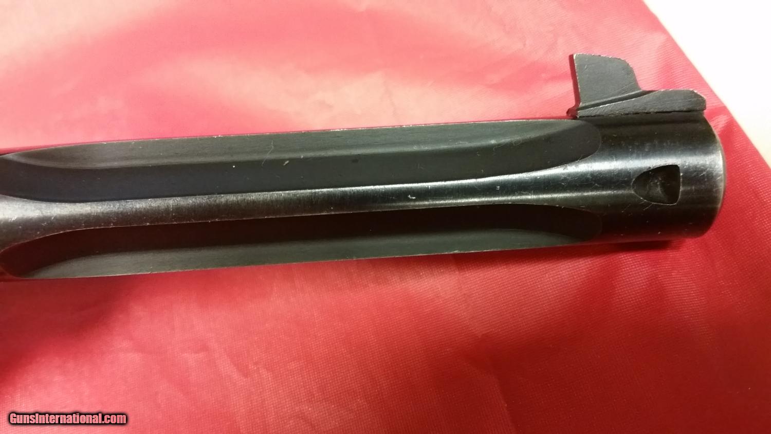 Description: High Standard Supermatic Trophy, .22, 7 1/2" bbl., Early Hamden Mfg., Serial Number ML132XX. Well used, no cracks in frame, Was drilled for scope base.. Test fired and works good. Poor finish. No rust. Good Bore. $250.00 (CC+3%) Shipping $20.00 SOLD |