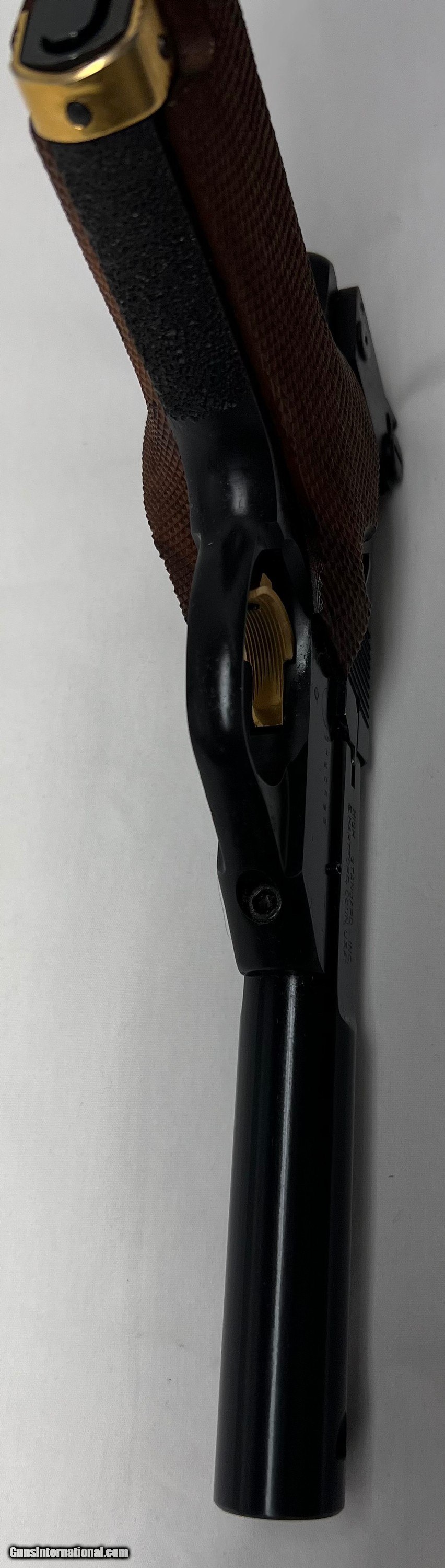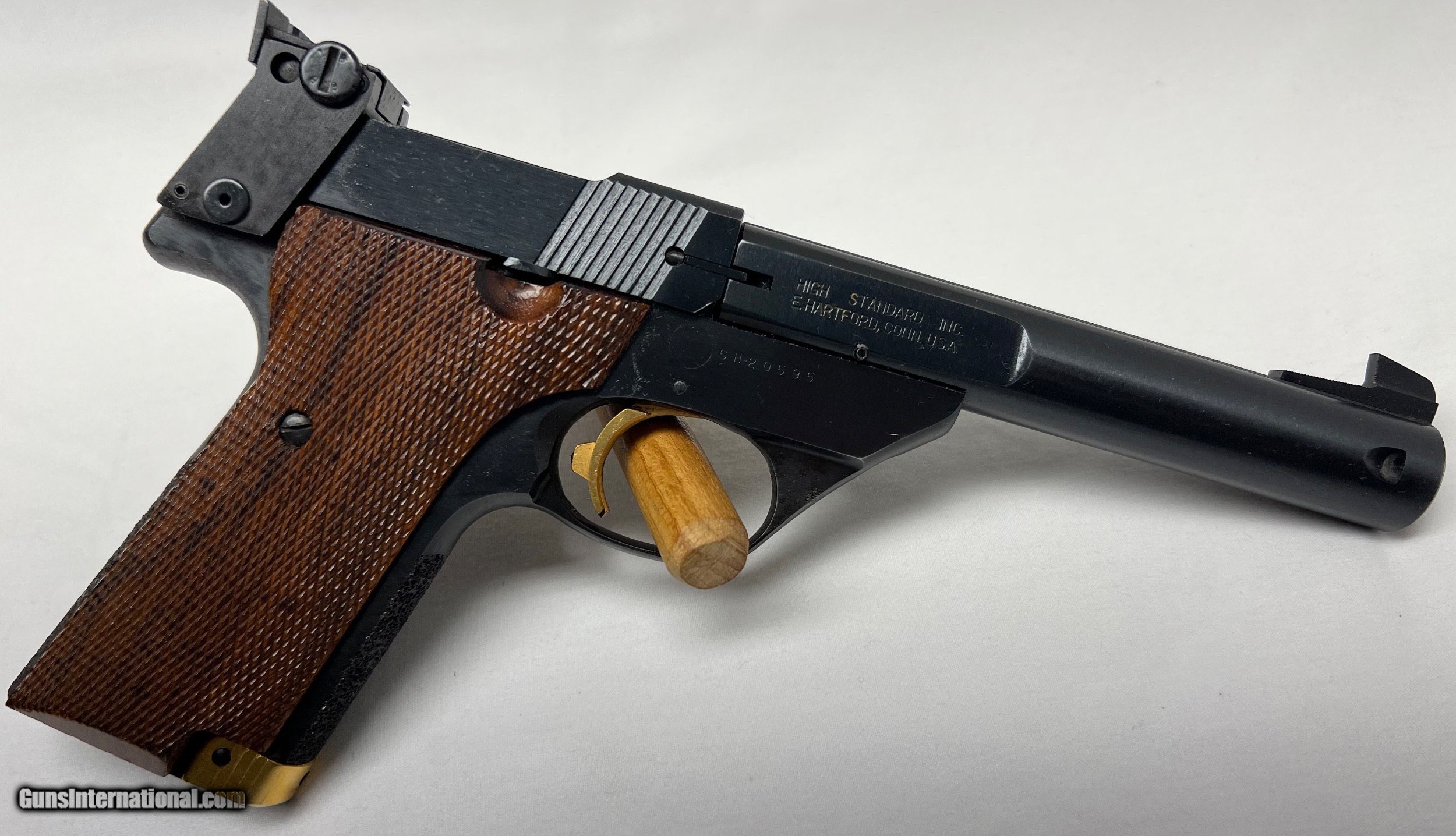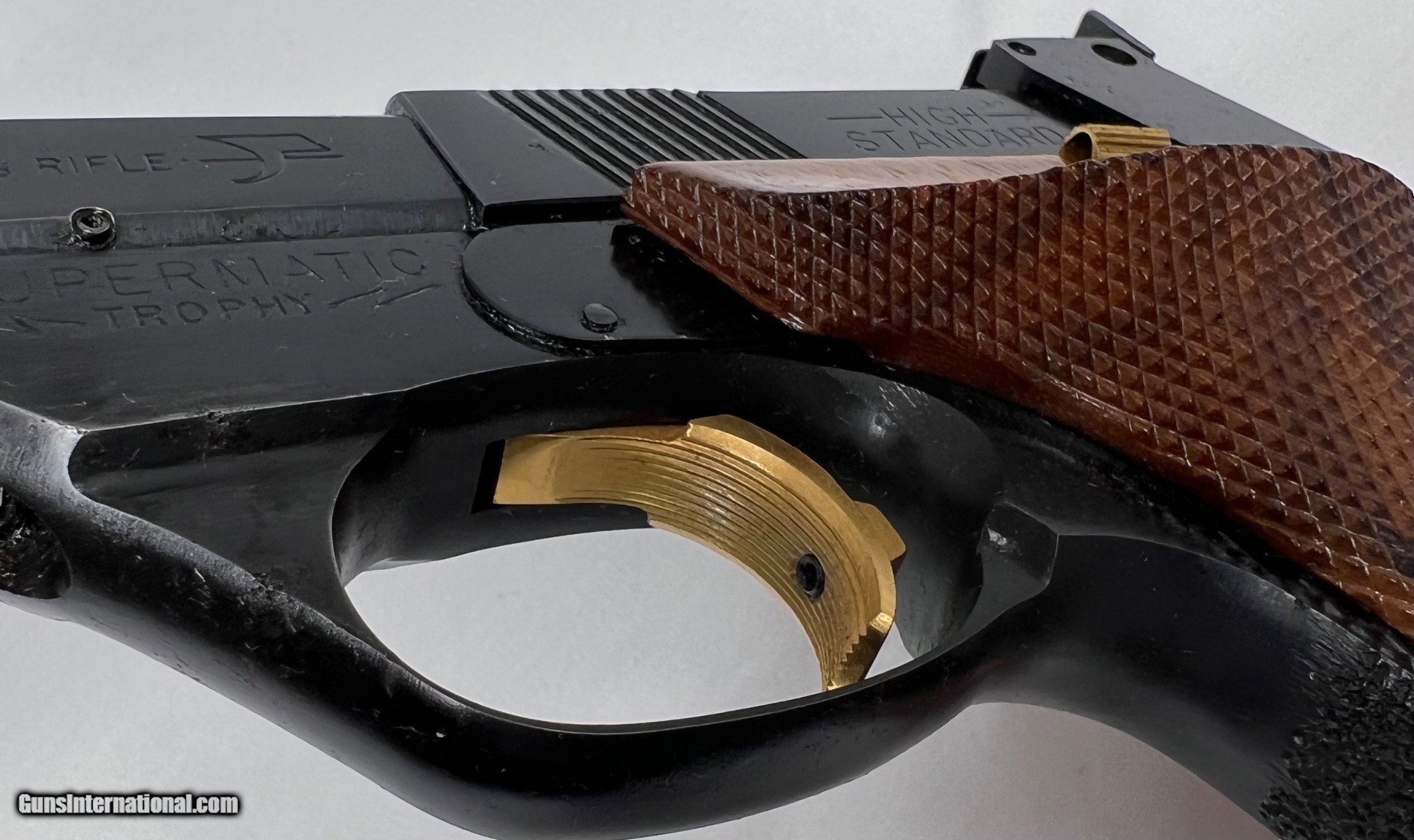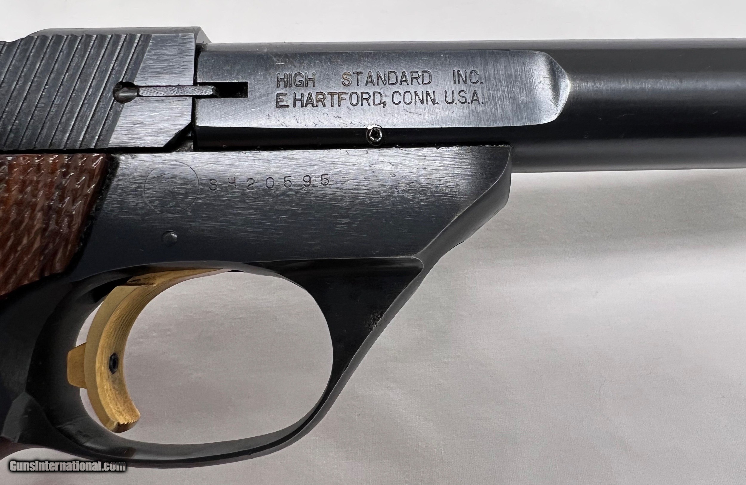 Description: Gentleman, for sale is a High Standard Supermatic Trophy Target semi auto rim fire 22 caliber pistol. This quality piece made was made in the USA in Hartford, Ct. Specifications as follows: item has a 6” barrel, adj. sights ,bright blued finish, bull bbl, gold trigger, and wooden grips . The serial # SH 20595. This piece is in excellent condition. The bore is very good too. Comes with the original High Standard 10 shot clip. The only issues are there are a couple of minor spots on the frame that I tried to show on the last picture. This pistol is an accurate shooter as well as a great collectible item. Great pic's attached. Thanks for looking. Any questions call Greg 315-481-8005 Gentlemen, lowered the price on this great piece by $50. Please act quickly as going to Florida for the winter on 12/22. Thanks Greg SOLD Handgun Caliber: .22 Long Rifle Manufacturer: High Standard Model: Supermatic Trophy Barrel Length: 6 Condition: Very Good Metal Condition: Very Good Wood Condition: Excellent Bore Condition: Excellent Action: Semi Auto |