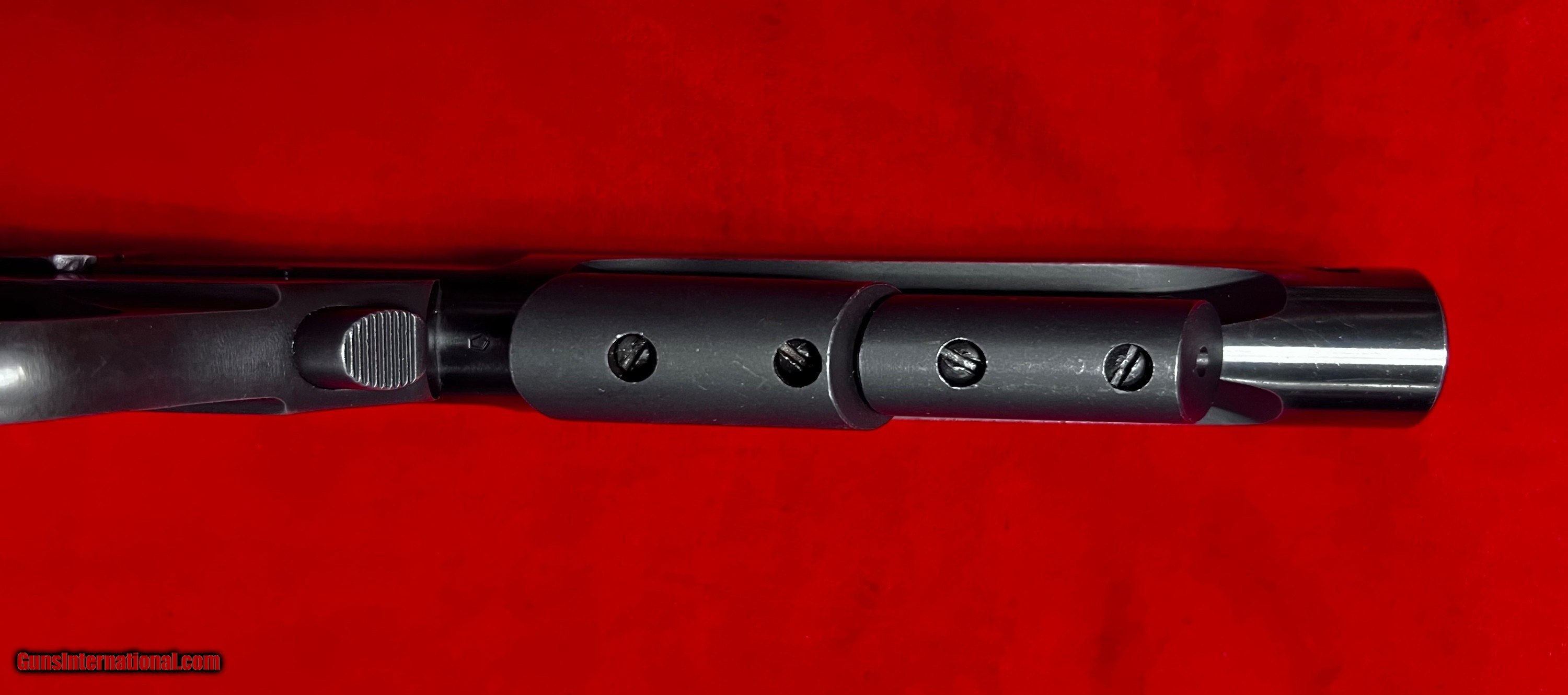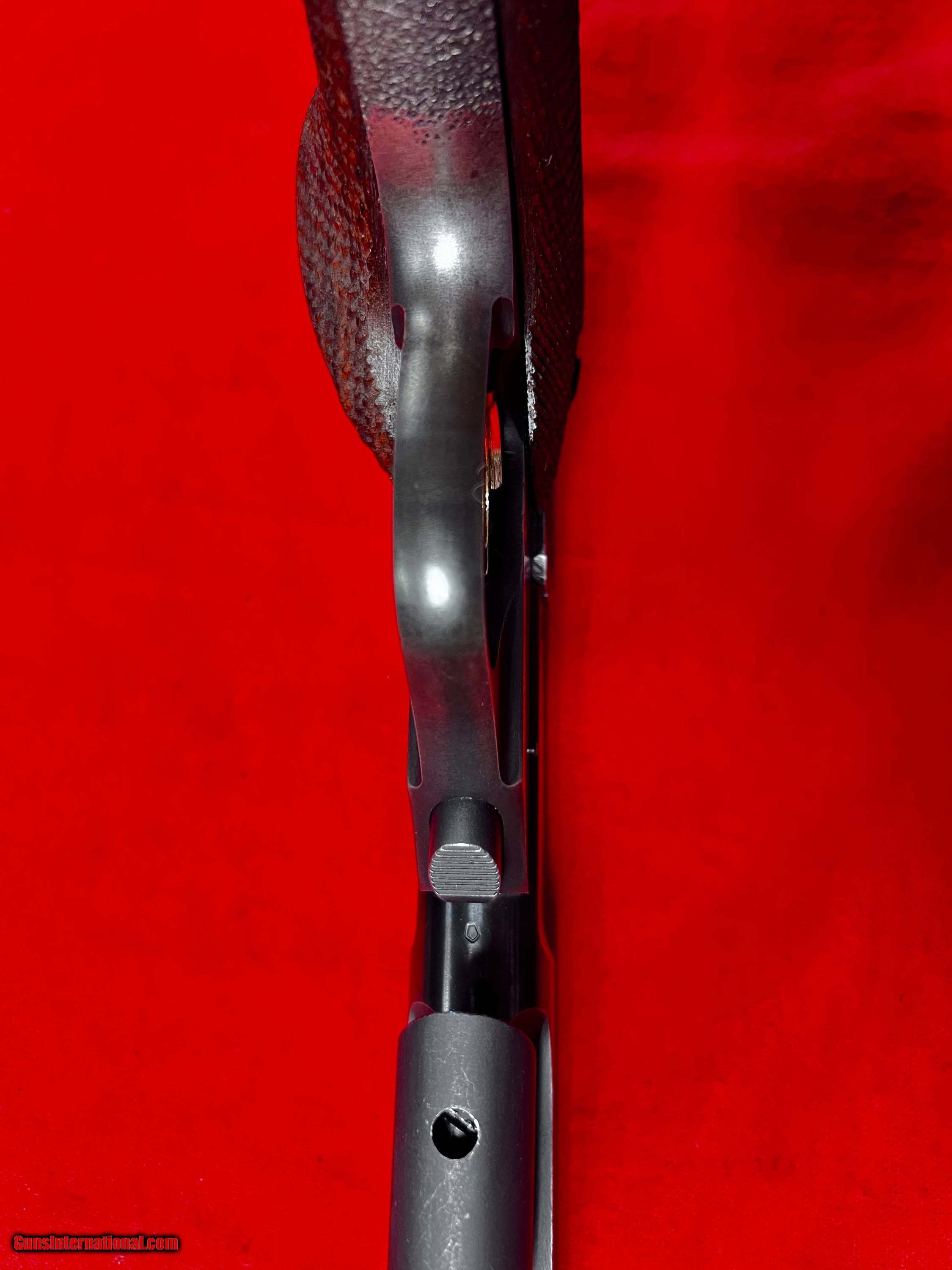 Description: Excellent HS Hamden 1975 made Supermatic Trophy with fluted barrel, weights and red mag Price: $875.00 Buy Now Contact Seller |