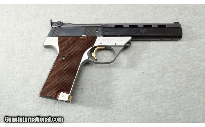 Description: High Standard "THE VICTOR" target semi-automatic pistol in .22 Long Rifle caliber. It features a vented rib on 5 1/2" slab sided barrel, and adjustable sights. This is an excellent example with brilliant bluing and checkered walnut grips with thumb rest. Checkering is sharp and pointed. It has gold plating on Trigger which is adjustable for pull force and over travel. Only one magazine and no box. .22 Long Rifle SOLD Metal Condition: Excellent Wood Condition: Excellent Bore Condition: Bright Barrels: 5 1/2 Inches Triggers: Factory Weight: 2 lbs 12 oz Sights: Adjustable Item Location: La Vista, NE |