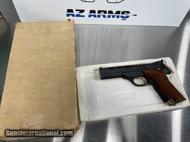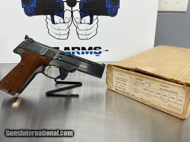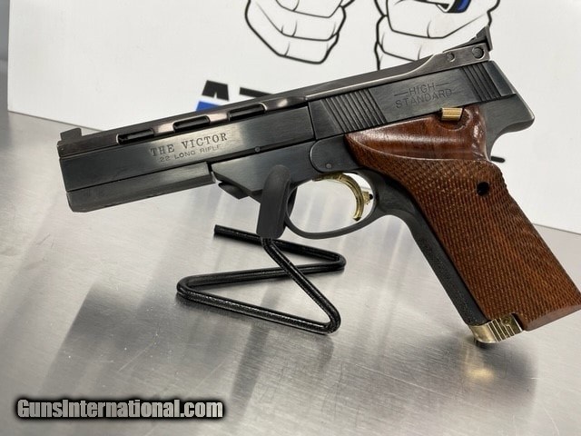 Description: Guns Listing ID: 483437 22-caliber pistol built from stainless steel. Has interchangeable barrels in 4.5in length. Barrels have full length ventilated ribs, checkered walnut grips with thumb rest. Gold plated trigger is adjustable. This firearm is new and unfired comes in original box. This is truly a rare find. SOLD Manufacturer: HIGH STANDARD Model: THE VICTOR Caliber Info: 22 LR Condition: Used - Non-Certified Barrels: 4.5 BARREL Finish: BLACK /W WOOD STOCK |