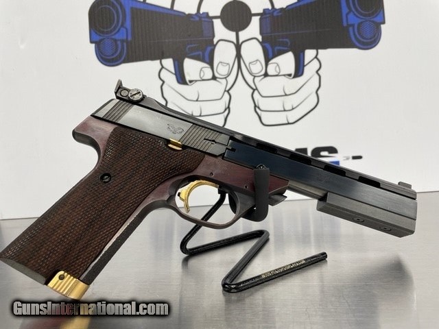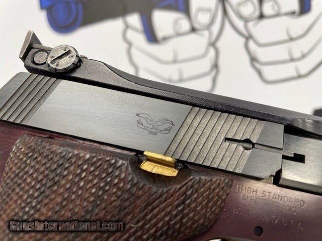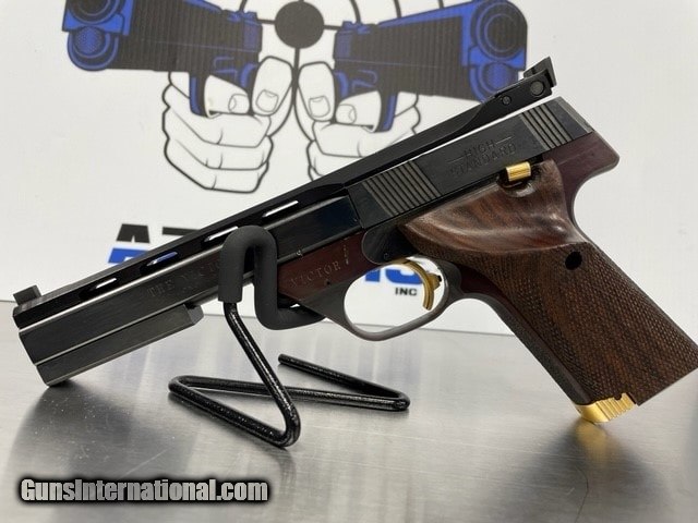 Description: Guns Listing ID: 483469 High Standard has an enviable reputation in American .22 caliber target shooting sports. The company formed in 1926 and began producing target grade .22 caliber semi-automatic pistols in 1932 with the introduction of the Model B, according to Tom Dance, author, sportsman, and firearms historian. A series of \"Letter\", \"Hammer Letter\", and \"Lever Letter\" guns followed with a series of improvements, refinements, and features along the way. By the late 1940s the G Series had appeared and in 1949 the GO was introduced as an Olympic and International grade match pistol. About 1200 were made. It was discontinued in 1950. 1950/51 also saw what would become the High Standard Supermatics. The 1951 models were called the Supermatic, Olympic, Field King, and Sport King. By 1954 the Supermatic would become a distinct line of pistols and the Dura-Matic line would be introduced. The Victor, or more rightly the Supermatic Victor, first appeared in the High Standard .22LR target pistol lineup with the 104 Series in 1962 according to John Stimson. It was the now famous and very collectible slant grip 104. The Victor has continued as part of the Supermatic line and has been in production right up to today. It is based on the military frame. The slab-sided barrel and other components give it a unique appearance. It has built a deservedly good reputation for accuracy and performance . . . High Standard‚‚s top performer SOLD Manufacturer: HIGH STANDARD Model: THE VICTOR Caliber Info: .22 LR Condition: Used - Non-Certified Barrels: 5.5 BARREL Finish: BLACK /W WOOD STOCK |