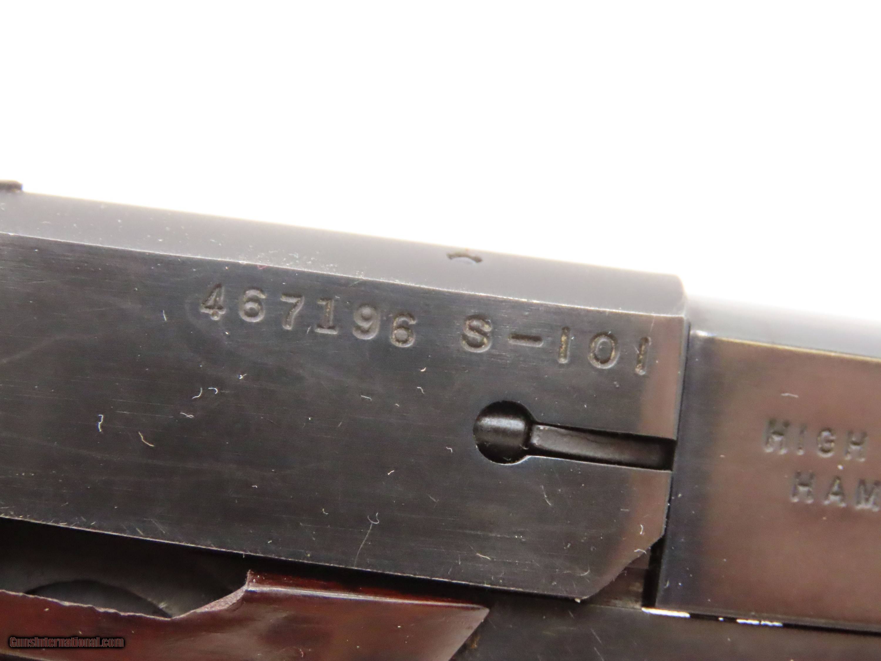 Description: HIGH STANDARD Third Model Supermatic S-101 .22 RF Target Pistol C&R With a Reputation for RELIABILITY and ACCURACY Here Ancestry Guns presents a C&R High Standard Supermatic Model S-101 Pistol, made circa 1953 in Hamden, Connecticut. The High Standard Mfg. Co. was officially founded in 1926, and in 1932 it moved to a bigger plant in Hamden, Conn., where production began. This pistol is a semi-automatic .22 LR target pistol manufactured from 1951 to 1957. It is well known for its accuracy and was popular in competitive shooting events during the 50s. It was made highly successful on the civilian market and even found its way into military contracts. Recruits were given these pistols to practice their marksmanship instead of the .45 caliber 1911 pistol. These pistols were available in a 4.5 inch and 6.75 inch barrel length, with the latter including an integral muzzle brake. A truly neat feature is the barrel interchangeability. With the push button take down, it was sinch to make the change. They also came equipped with removable barrel weights (2 oz and 3 oz), enhanced customization, balance and accuracy. To top all of that off, the adjustable rear sight is all gravy. High Standard’s production over the years has been vast. Over time, it mainly produced handguns, including plinkers, target guns, long and short barrels, as well as serious competition pieces. If you’ve ever heard the term “space gun”, odds are good that they were talking about High Standard. The slide stop is removed from above the right grip, but this does not seem to be too uncommon for a competition level shooter. We imagine it “getting in the way” and being an awkward function at greater speeds. The overall condition is fine. Original finish. Excellent action. Bright, sharpy rifled bore. Markings are crisp. Visible numbers match. Very fine grips. This firearm is classified as a Curio & Relic. Barrel is 6-3/4 inches. Caliber: .22 LR Overall condition as seen in photos. Very Fast. Very Safe. FREE SHIPPING. Will need to be sent to your local FFL or C&R Licensee. This firearm is classified as a Curio & Relic. Guaranteed AUTHENTIC & Includes CERTIFICATE OF AUTHENTICITY. ancestryguns $1050 #259874 Curio/Relic: Yes Price: $1,050.00 Buy Now Pay with