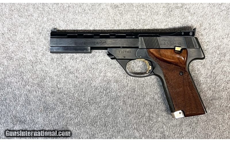 Description: High Standard ~ Victor ~ Chambered in .22 Long Rifle. Firearm features a 5.5" barrel with fixed front blade sight, rear adjustable target sight. Included with the firearms are two 10 round magazines. .22 Long Rifle SOLD Chambers: .22 Long Rifle. Metal Condition: Good condition. Wood Condition: Good condition. Bore Condition: Good condition. Barrels: 5.5" Barrel. Triggers: Semi-automatic. Weight: 3 lb Sights: "Fixed front blade sight, rear adjustable target sight. Item Location: Acworth, GA |