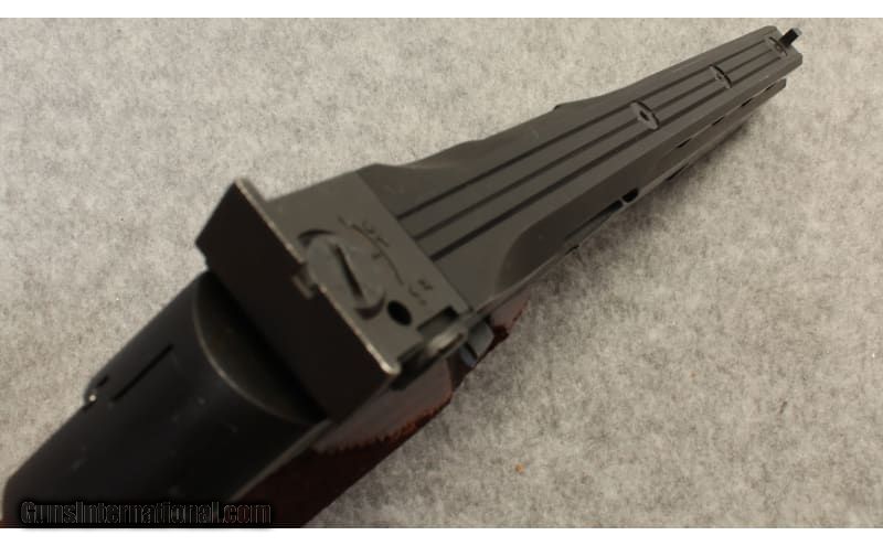 Description: High Standard Victor pistol chambered in .22 Long Rifle. Sights are an adjustable rear notch and front blade sight. Bore is bright with strong rifling. Original wood grips are in excellent condition with light handling marks on either side. Metal is in excellent condition with wear marks on either side of barrel and on rib. Pistol is in overall excellent condition. .22 Long Rifle SOLD Chambers: .22 Long Rifle. Metal Condition: Excellent with wear marks on either side of barrel and on rib. Wood Condition: Original wood grips are in excellent condition with light handling marks on either side. Bore Condition: "Excellent, bright with strong rifling. Barrels: 5 1/2 inches. Triggers: Gold-plated trigger. Weight: 2 Lbs. 10 Ozs. Sights: Adjustable rear notch sight and fixed front blade sight. Item Location: Tualatin, OR |