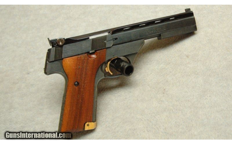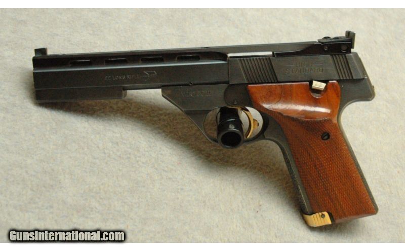 Description: High Standard Victor Pistol .22 LR. Excellent condition with one mag and box. Great fit and finish, smooth action, crisp target trigger and adjustable sights. A great choice for pistol target competitions. SOLD Caliber Info: .22 Long Rifle. Chambers: Semi auto. Metal Condition: Excellent, light wear and handling marks. Wood Condition: Grips are in excellent condition. Bore Condition: Bright. Barrels: 5 1/2" Ribbed target barrel with bolt on weight. Triggers: Serrated target trigger. Stock: Factory wood grips. Weight: 50 Ozs. Sights: Adjustable target sights. Extras: With one mag and box. Item Location: La Vista, NE |