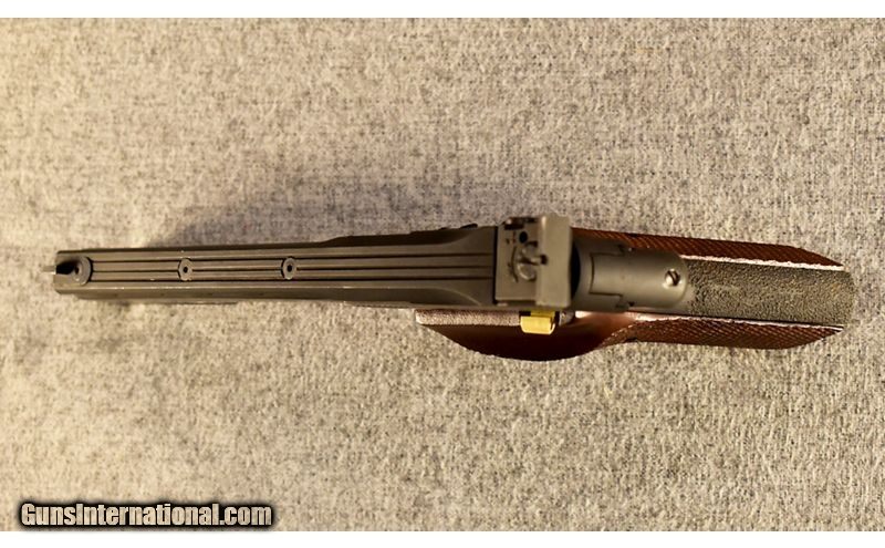 Description: This is a pre-owned High Standard Victor in .22 Long Rifle with the original box and a 5 1/2" barrel with the barrel weight .22 Long Rifle SOLD Metal Condition: Very good with a few small scratches and rub marks Wood Condition: Very good with light handling wear Bore Condition: Clean with bright lands Barrels: 5.5" with weight Butt Pad: Checkered walnut with thumbrest Weight: 2 Lbs. 15 Oz. Sights: "Blade front, adjustable rear Item Location: Glendale, AZ |