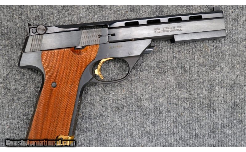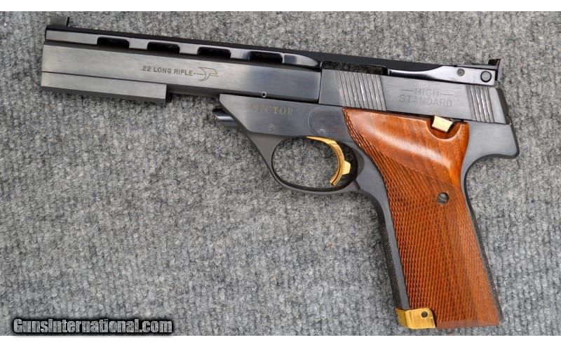 Description: For your consideration, a High Standard Victor chambered in .22 Long Rifle. Features include stippling on front and backstraps of the grip frame, an underbarrel weight, and a ventilated rib on the heavy profile barrel. This piece dates to 1980. .22 Long Rifle SOLD Metal Condition: Excellent Wood Condition: Excellent Bore Condition: Excellent Barrels: 5.5 Triggers: Serrated Weight: 3 Sights: Iron Sights Item Location: Hamburg, PA |