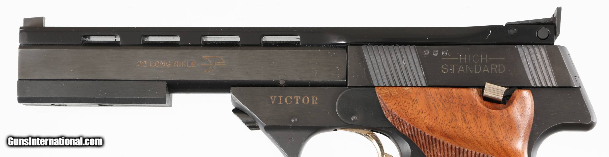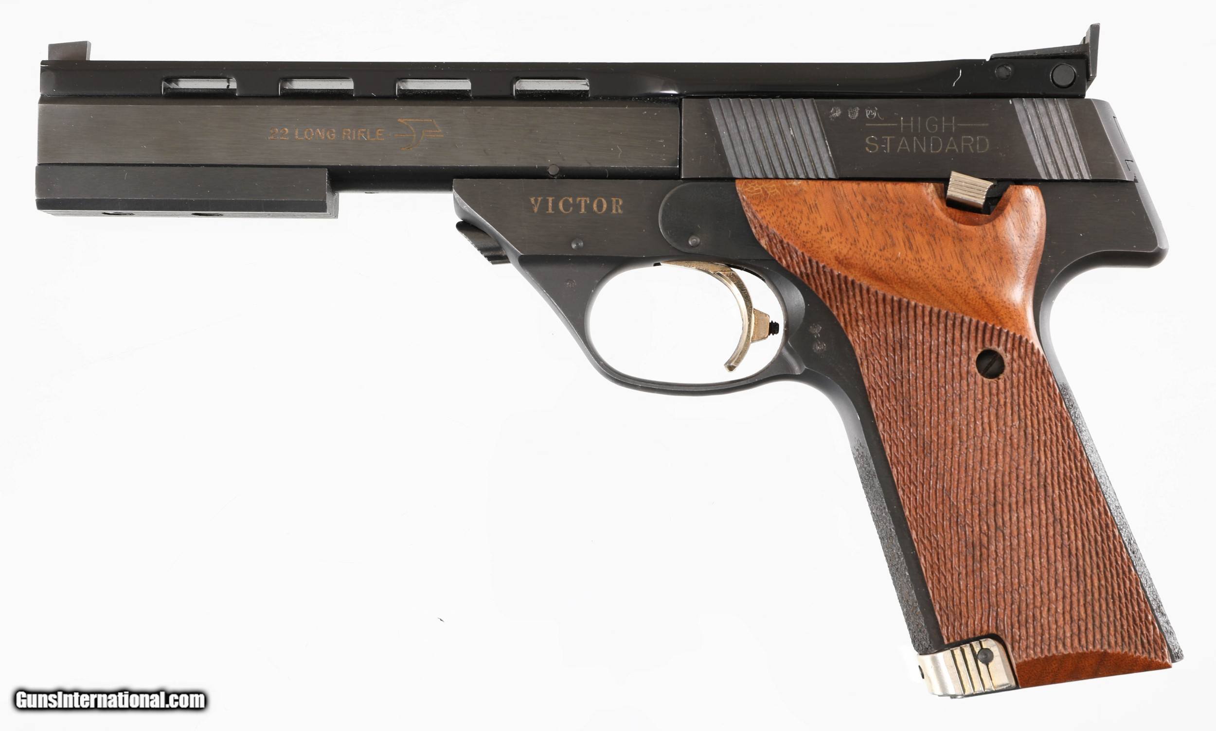 SOLD Handgun Caliber: .22 Long Rifle Manufacturer: HIGH STANDARD Model: VICTOR Serial Number: ML517?? Barrel Length: 5 1/2 Condition: EXCELLENT |