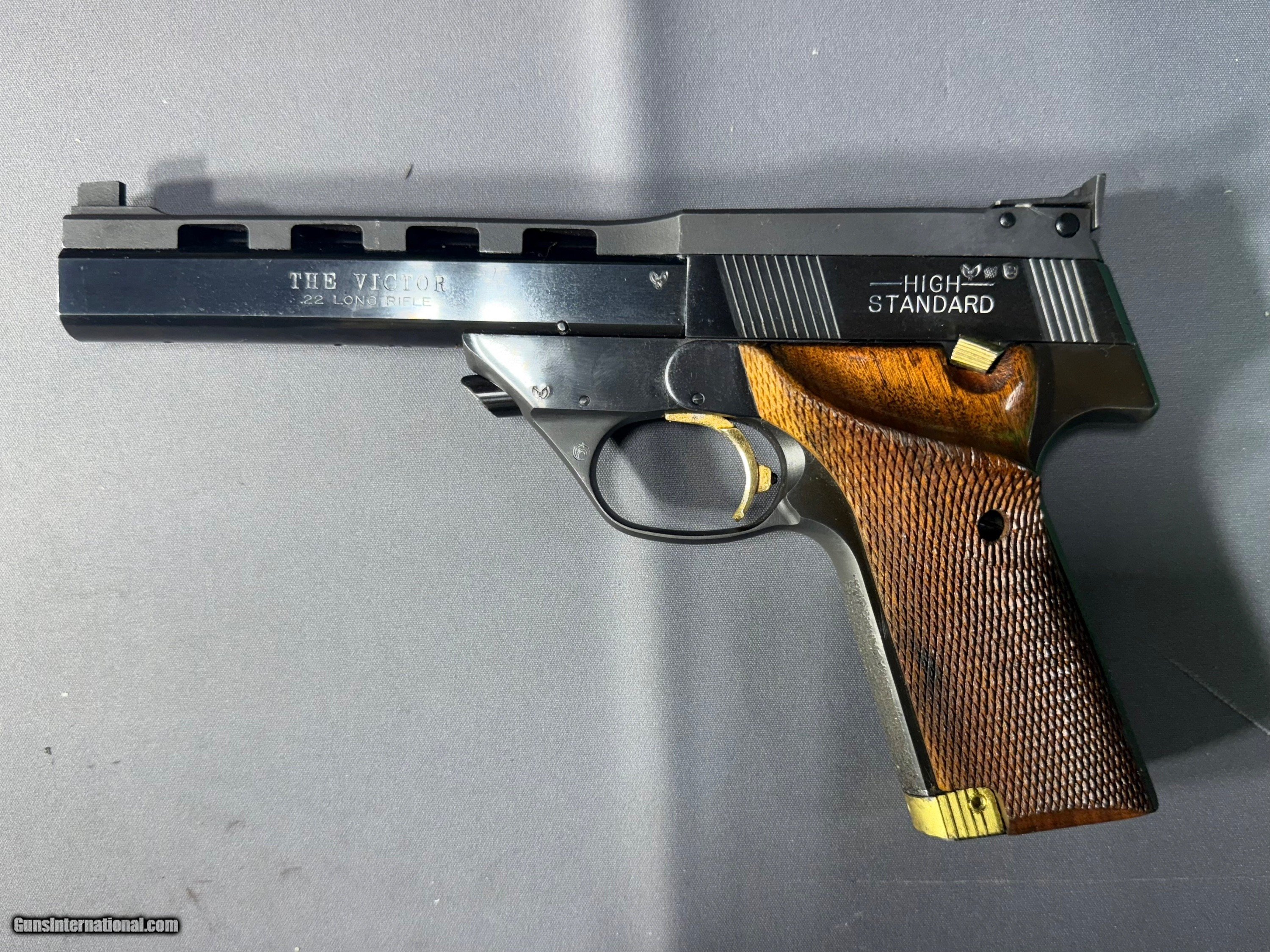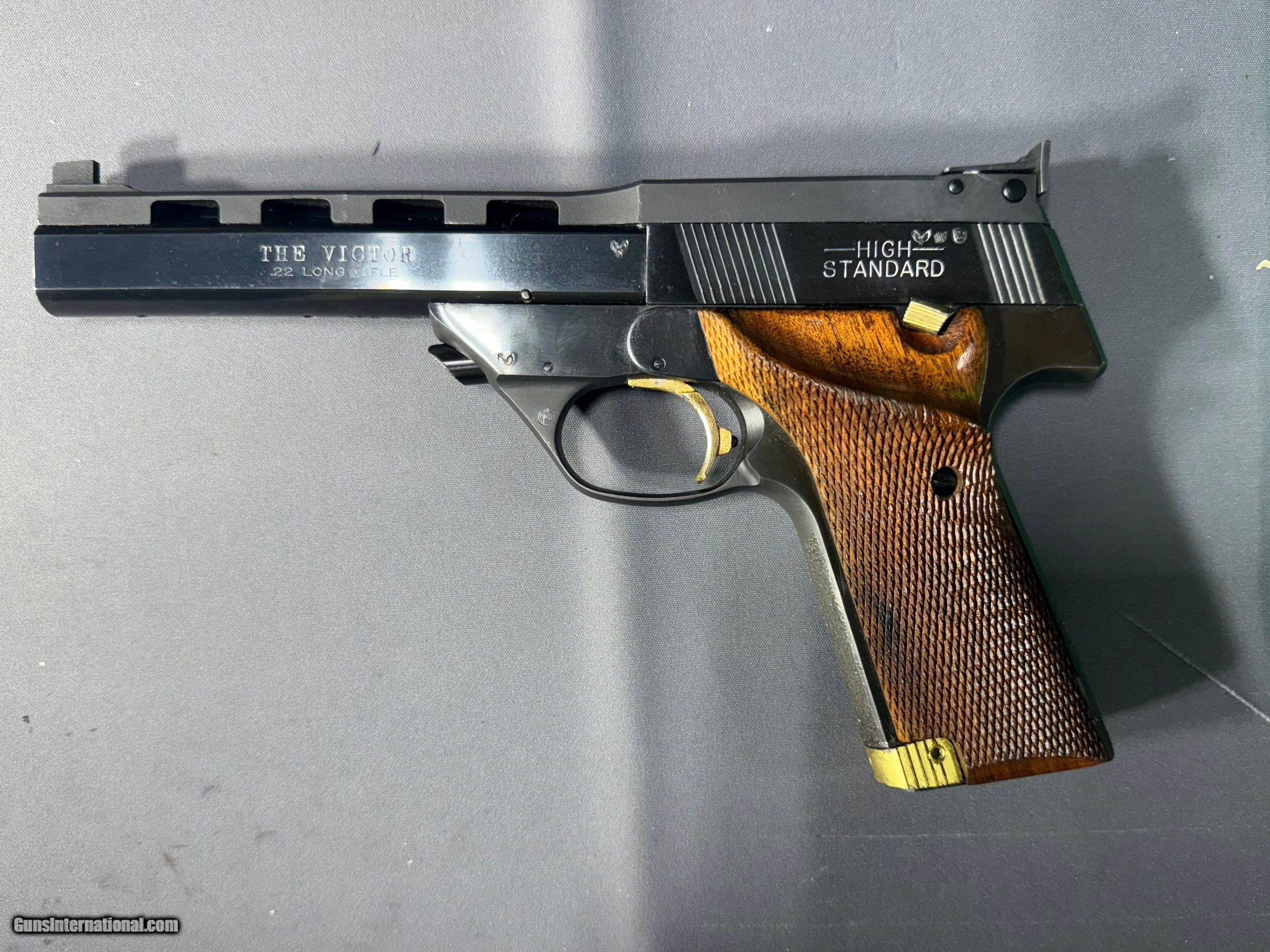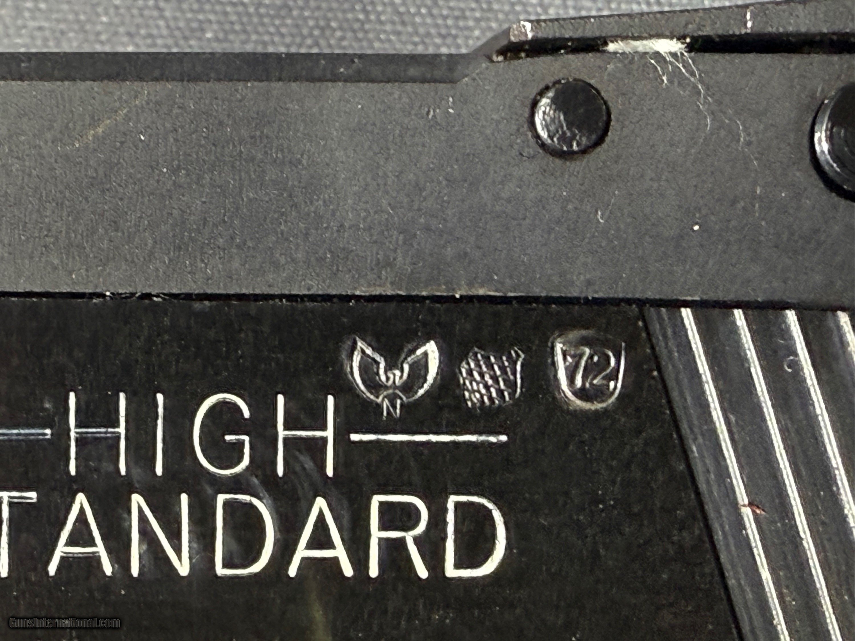 Description: High Standard Victor Military Model 107 22LR. Has German Proof Markings. Hamden CT manufactured. Includes 1 magazine and shipped in a plastic case. Gun in good condition with little use. This is a rare edition of the Model 107 with the German Proof Markings. It has a few very light scratches. See photos. SOLD Handgun Caliber: .22 Long Rifle Manufacturer: High Standard Model: 107 Serial Number: 2283311 Bore: Good Chambers: Good Condition: Good Metal Condition: Good Wood Condition: Good Bore Condition: Good Barrels: Good Action: Semi Automatic Finish: Blued Extras: German Proof Markings Case: Plastic Item Location: Mount Juliet TN |