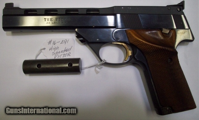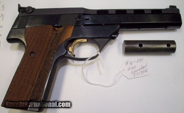 Description: This 22 LR Cal is a High Standard Victor with a 5 1/2" VENT RIB barrel with ADJUSTABLE sight. Gold trigger. Comes with barrel weight. Condition 99%. $850.00. rmgrigolettoyahoo 732 280 8750. SOLD |