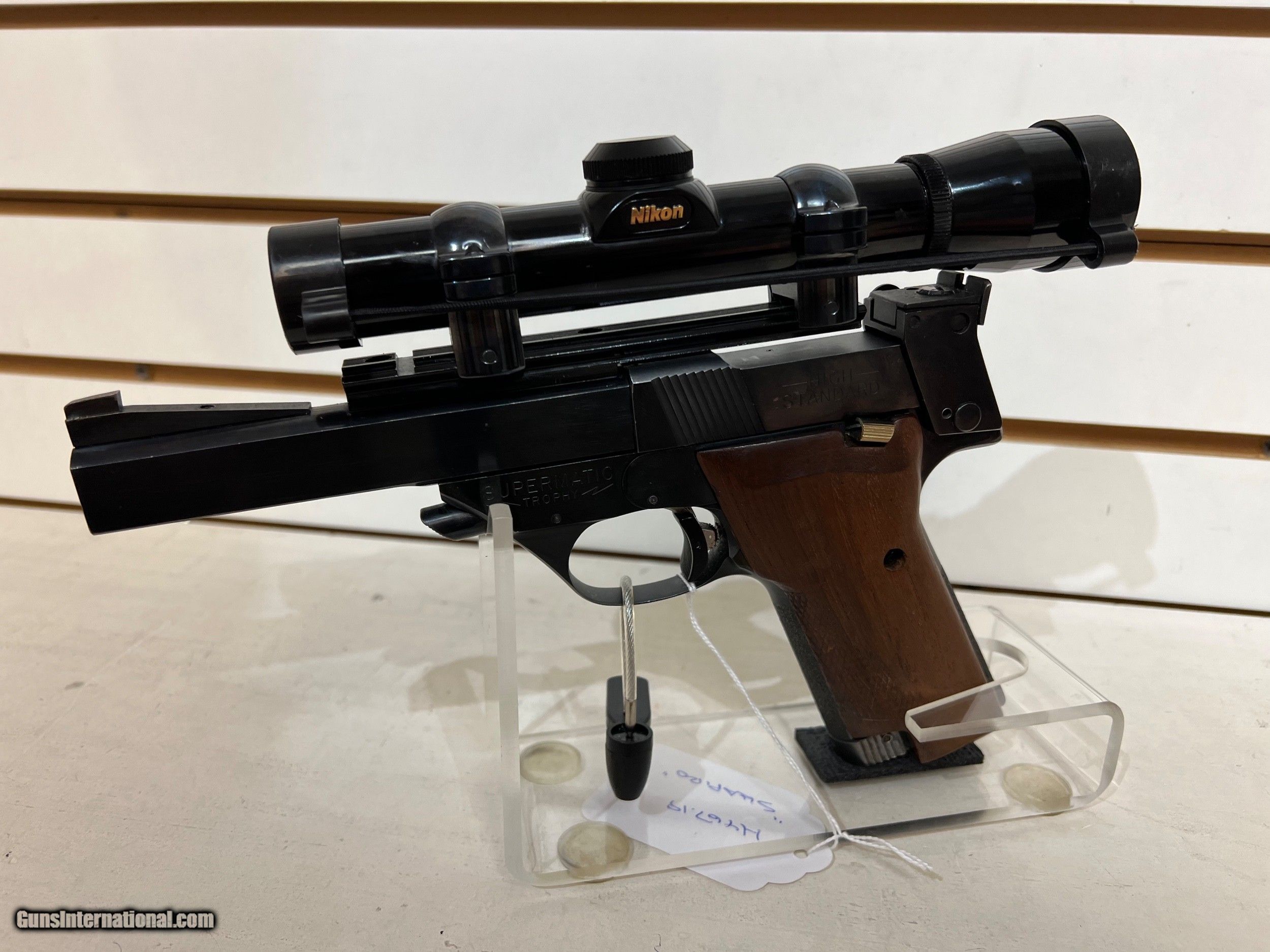 Description: Lightly used High Standard Super Matic 22LR 5" bbl 1 mag Nikon Scope good condition Buyer pays shipping Millers Gun Center Located in New Castle, Delaware "Home of TAX-Free shopping" No Credit Card Fees Send Gun international inquiry and then call 302-328-9747 to complete your purchase SOLD Serial Number: 1530644 |