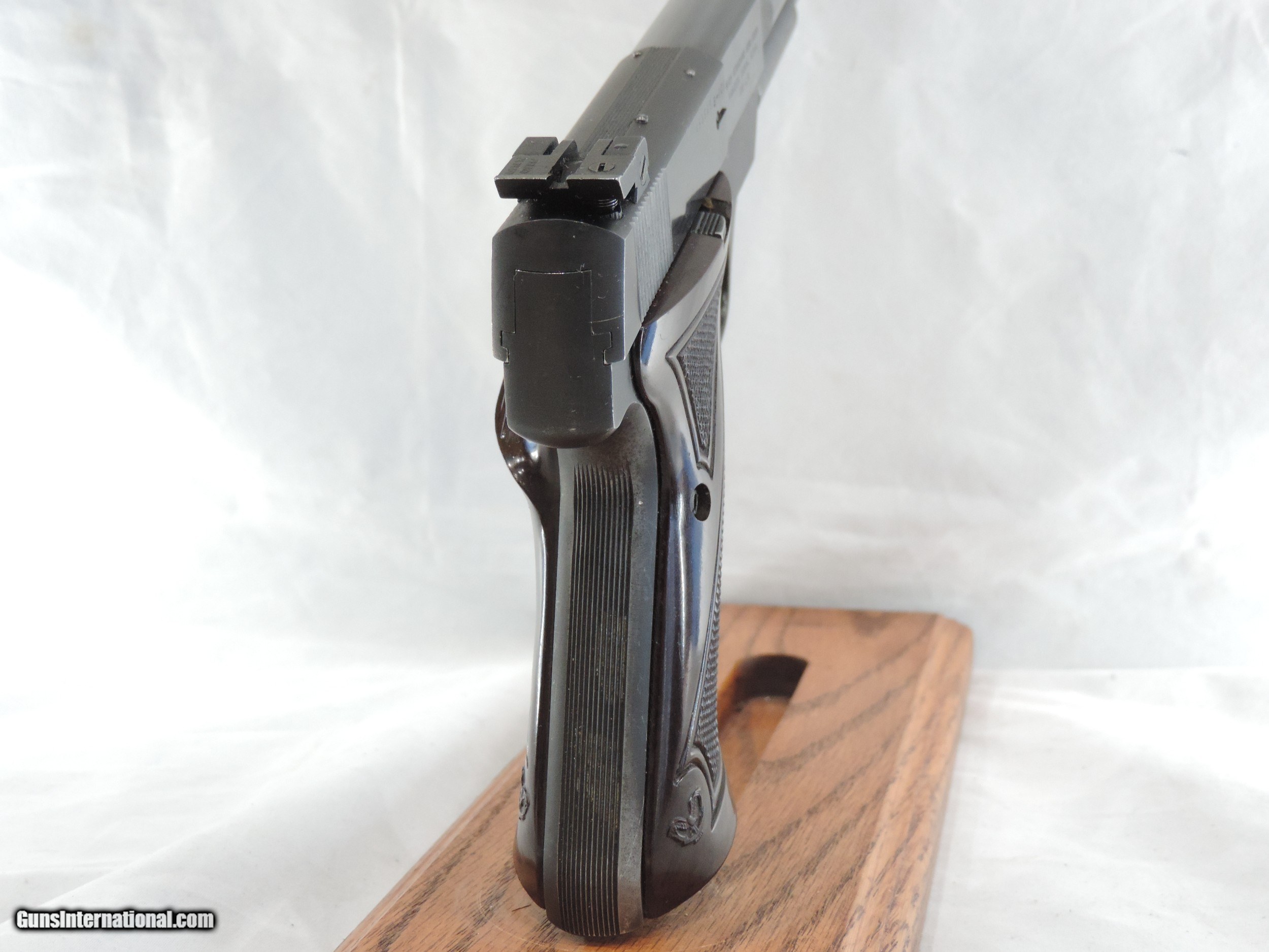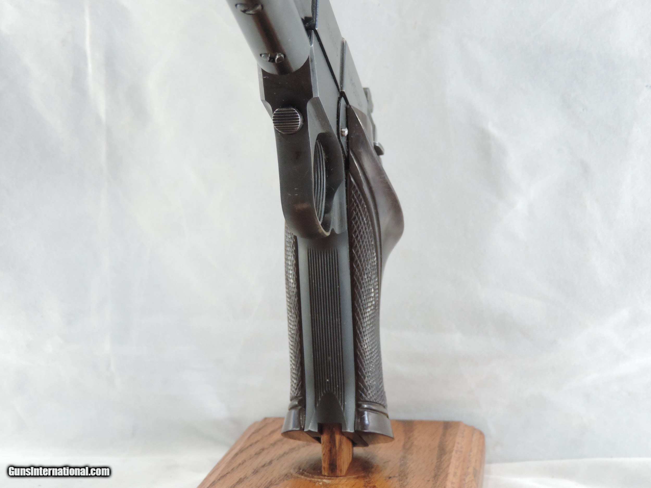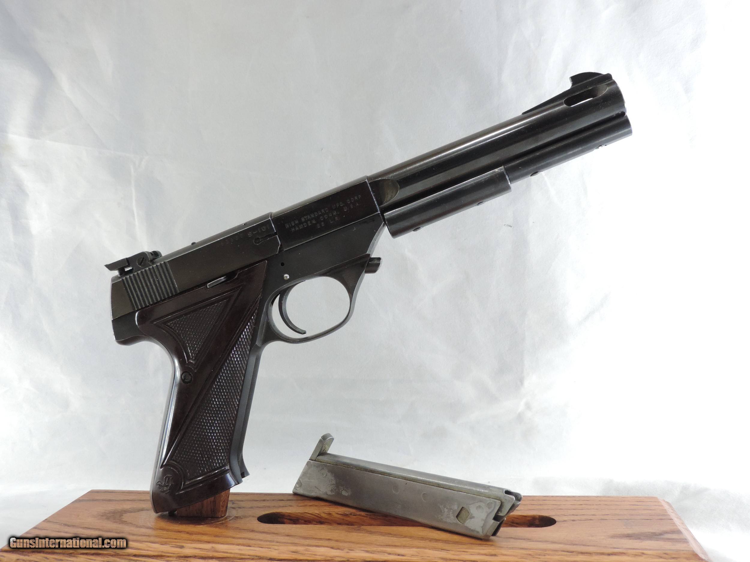 Description: INV. 8719 MINTY HIGH STANDARD SUPERMATIC, MDL. S-101, CAL. .22LR, SER. 453569 MFG. HAMDEN, CT. THIS TROPHY TAKER IS JUST ABOUT PRISTINE. THE ONLY FINISH LOSS THERE IS, IS FROM SOME VERY SLIGHT SHARP EDGE SILVERING AND POSSIBLE A TINY SURFACE SCRATCH OR TWO. THE REMAINING ORIGINAL FINISH WOULD RATE 99.9%. ALL OF THE PARTS ARE CORRECT FOR THIS MODEL. THE BROWN PLASTIC THUMB REST GRIPS ARE WITHOUT A BLEMISH AS IS THE GRIP SCREW. THE 6" TARGET BARREL FEATURES A BUILT IN MUZZLE BRAKE AND IS PRISTINE. THE FEED RAMP, SLIDE RAILS AND BOLT FACE SHOW LITTLE USE THE BORE IS MIRROR BRIGHT WITH RAZOR SHARP RIFLING WITHOUT A TOUCH OF FROST. THE REAR SIGHT IS FULLY ADJUSTABLE AND IN PERFECT CONDITION. IT COMES WITH TWO ORIGINAL MAGAZINES AND TWO REMOVABLE BARREL WEIGHTS. FOR THE SERIOUS COLLECTOR OR THE COMPETITION SHOOTER THAT WANTS TO OWN A FAMOUS TROPHY TAKER, THIS "X" RING BLASTER IS A GREAT FIND. MODESTLY PRICED AT ...$895.*** ###100%SATISFACTION GUARANTEED. To purchase this firearm or if you want to request more information contact us at: Email ckguns[at]ymail[dot]com Phone 201-512-0002 Cell 201-575-6838 FAX 201-215-4759 We accept most major credit cards. Prices shown are Discounted 3% for Cash or Check. The buyer must be familiar with all the laws governing the purchase and the ownership of firearms in their own city and state. The Yankee Armorer, Inc is not responsible for any failure to comply with or observe these laws. The Yankee Armorer, Inc will only ship after full payment and receipt of all required documents. Shipping: Add $35.00 for handguns, $45.00 for long guns. New Jersey buyers are subject to a 7% sales tax. The Yankee Armorer, Inc offers a 3 day inspection period with full refund upon return of intact firearm and in the original condition. The Yankee Armorer, Inc offers a no interest lay away program - 25% down; 25% in 30 days; 25% in 60 days; and full payment in 90 days. Any violation of this policy is subject to restocking and forfeiture of all payments. Any variation from this policy must be agreed to in advance. Unshipped Cancelled sales are subject to a 20% restocking fee. Be advised that all firearms sold by The Yankee Armorer, Inc. or the Gun Exchange, LLC (SELLER) are sold as collector’s items. They have not been fired or tested for safety and must be examined by a license gunsmith prior to use. By purchasing any item from the (SELLER), you are agreeing to hold the (SELLER) free from any damages or lawsuits of any nature. Any item left for transfer or storage will be charged to $25.00 per month, per item from the day of its receipt. Any variation from this policy must be agreed to in advance. Store hours 10:00 am to 5:00 pm Tuesday -Saturday. It's always best to call for appointment. Store 201-512-0002, cell 201-575-6838. SOLD |
