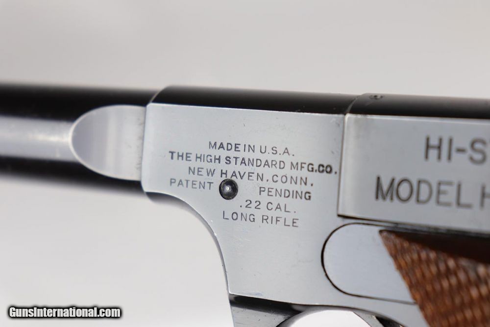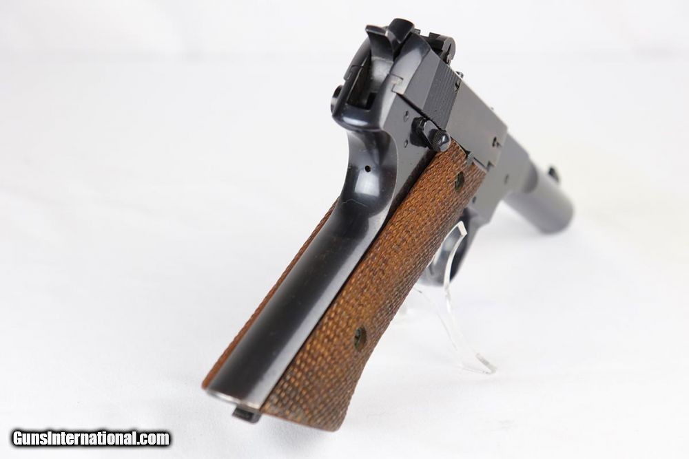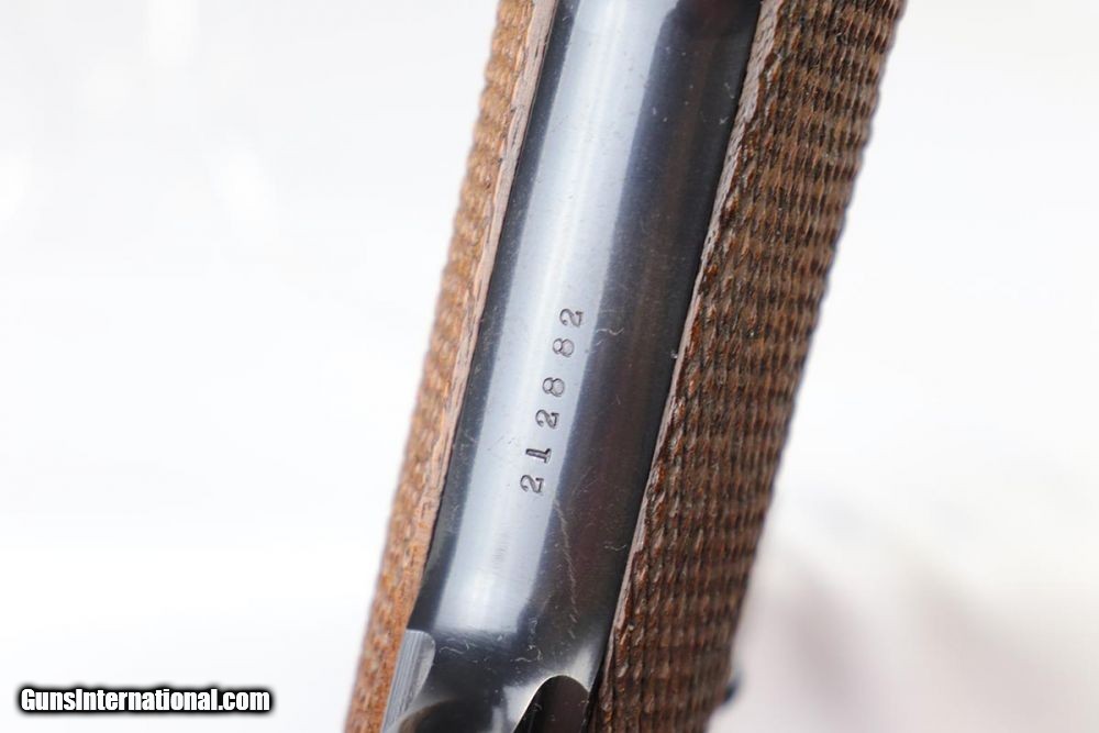 Description: This is a very nice and all original Hi-Standard Model H-D Military. The original bluing rates at about 94-95% with muzzle wear on each side, and some browning/thinning of the right side slide. Excellent straps and grips. Terrific bore. Guaranteed authentica and original. SOLD Curio/Relic: Yes Manufacturer: High Standard Model: H-D Military Serial Number: 212882 Caliber Info: .22 Bore: 9.5/10 Condition: 95% Manufacture Date: 1946-55 |