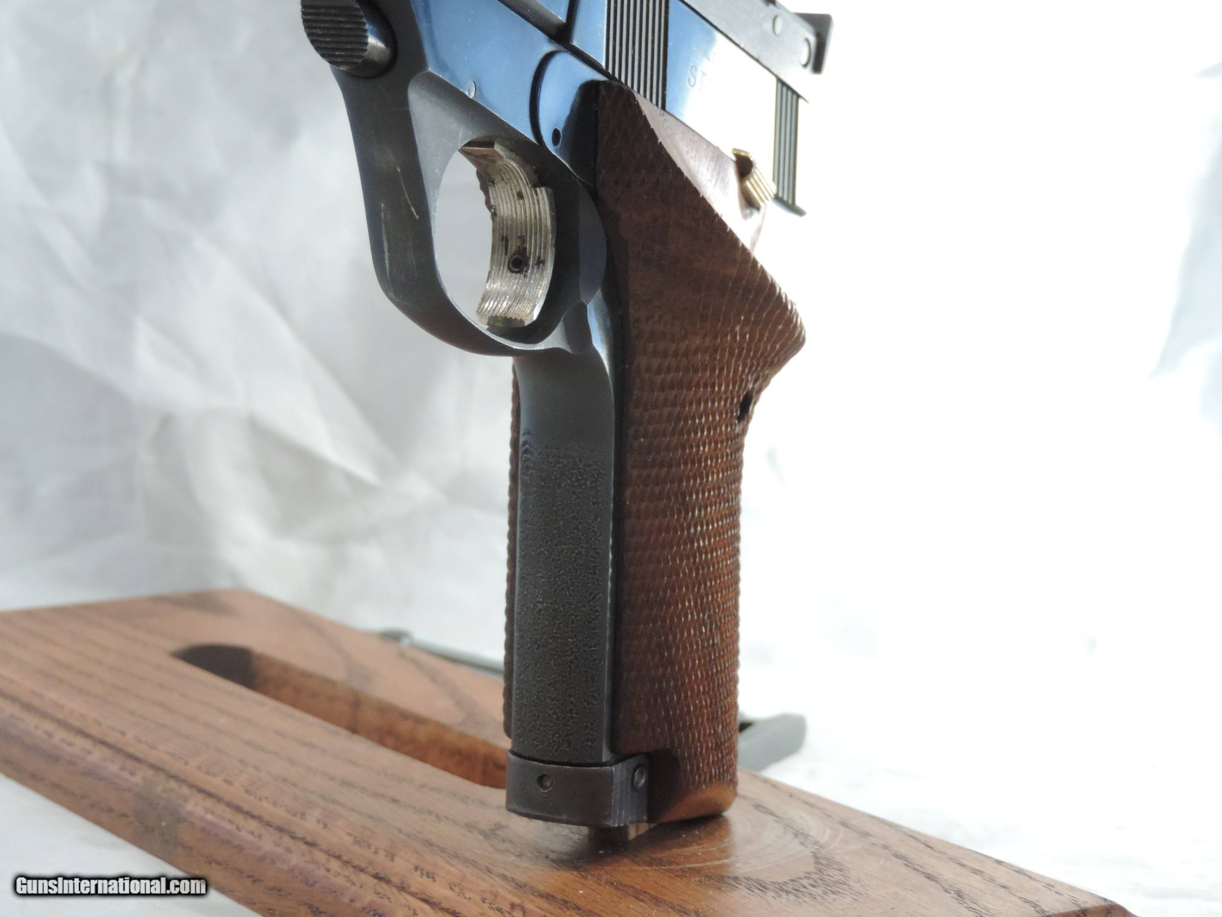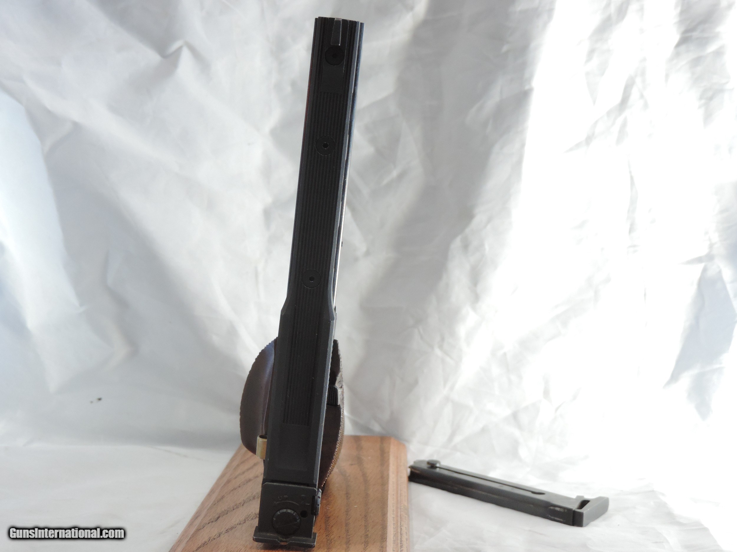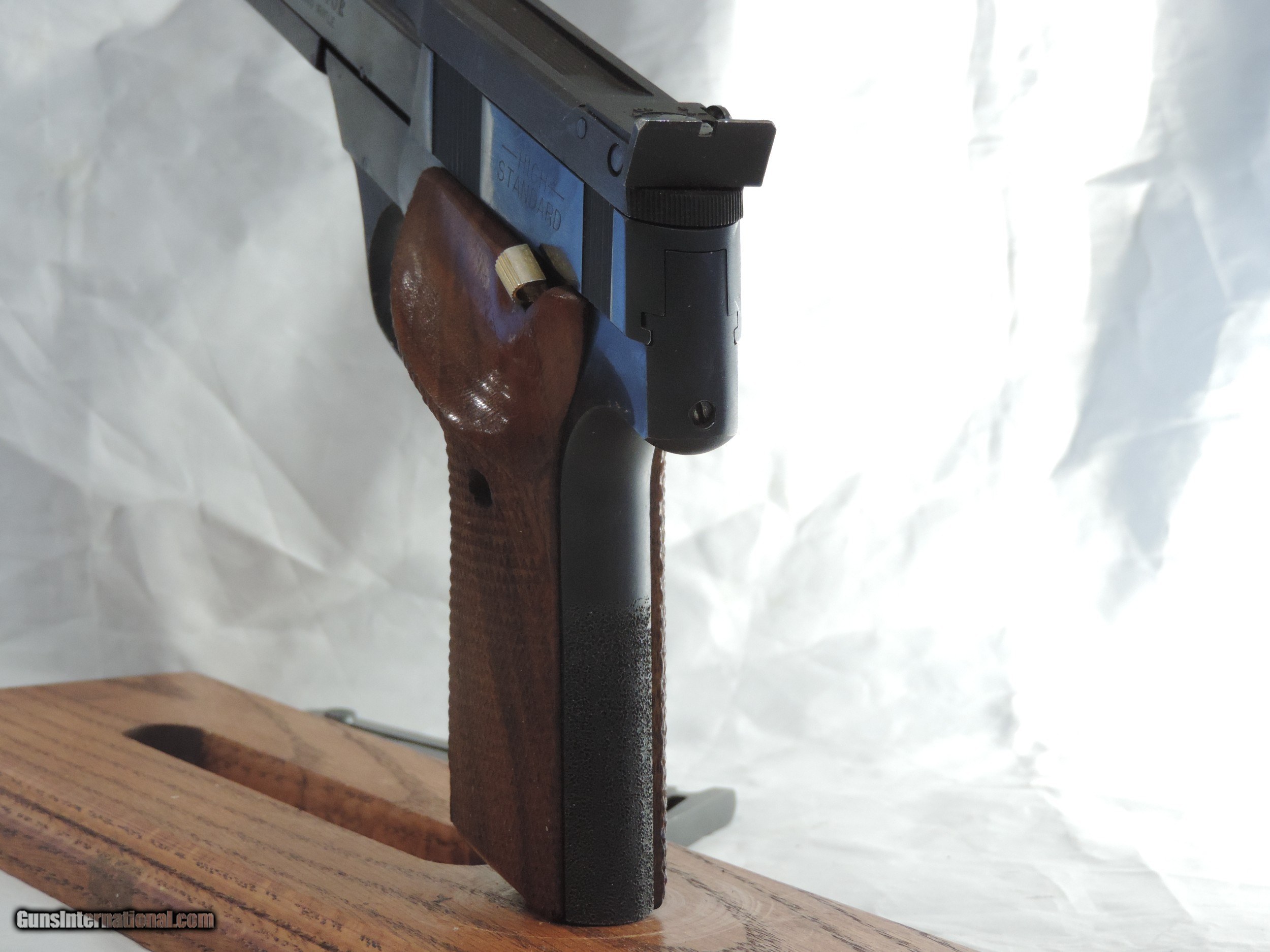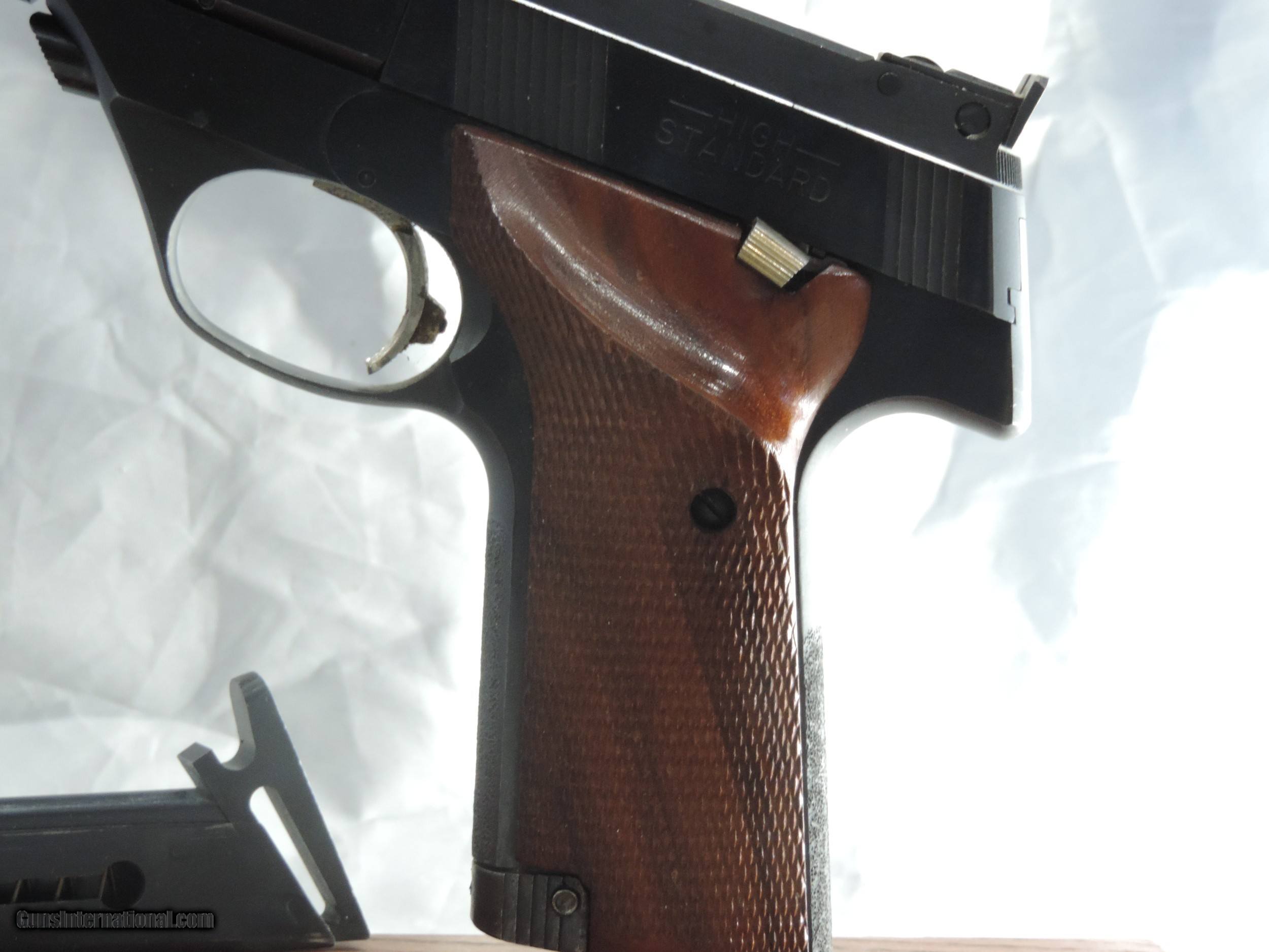 Description: INV. 10079 PRISTINE HIGH STANDARD VICTOR, MDL. 107 MILITARY, CAL. .22LR SER. 2312949. MFG. HAMDEN, CT. PRISTINE IS PRECISELY THE WORD FOR THIS VERY TOP OF THE HIGH STANDARD LINE. IT IS THE LAST VICTOR MODEL FEATURING SOME GOLD TRIM AND A MATTE FINISH VENTILATED RIB. THE GUN HAS RETAINED AT THE VERY LEAST 99.99% OF THE ORIGINAL HIGH POLISH FINISH. THE GOLD TRIGGER AND SLIDE HOLD BACK, ALSO AT 99.99%. THE LITTLE LOSS THERE IS, IS DUE TO SOME VERY SLIGHT SHARP EDGE SILVERING AND A TINY HAIRLINE SCRATCH. THE WALNUT CHECKERED THUMB REST GRIPS ARE ALSO PRISTINE. NOT CHIP, DING OR EVEN A FLATTENED POINT. THE SLIDE RAILS AND BOLT FACE SHOW LITTLE IF ANY USE. THE BORE LIKE THE GUN IS ALSO PRISTINE, MIRROR BRIGHT WITH RAZOR SHARP RIFLING. NOT WHISP OF FROST ANYWHERE. ALL PARTS ARE ORIGINAL AND IT AND APPEARS TO FUNCTION PROPERLY. THIS "CABINET QUEEN" COMES WITH ONE ORIGINAL BARREL WEIGHT AND ONE ORIGINAL MAGAZINE. FOR THE VERY CRITICAL COLLECTOR IT IS A FANTASTIC EXAMPLE. FOR THE SHOOTER, IT'S A REAL "X" RING BLASTER. MODESTLY PRICED AT.... $1295.*** *** 100% OF THE GUNS PRICE IS SATIFACTIOOON GUARRANTEED To purchase this firearm or if you want to request more information contact us at: Email ckguns[at]ymail[dot]com Phone 201-512-0002 Cell 201-575-6838 FAX 201-215-4759 We accept most major credit cards. Prices shown are Discounted 3% for Cash or Check. The buyer must be familiar with all the laws governing the purchase and the ownership of firearms in their own city and state. The Yankee Armorer, Inc is not responsible for any failure to comply with or observe these laws. The Yankee Armorer, Inc will only ship after full payment and receipt of all required documents. Shipping: Add $35.00 for handguns, $45.00 for long guns. New Jersey buyers are subject to a 7% sales tax. The Yankee Armorer, Inc offers a 3 day inspection period with full refund upon return of intact firearm and in the original condition. The Yankee Armorer, Inc offers a no interest lay away program - 25% down; 25% in 30 days; 25% in 60 days; and full payment in 90 days. Any violation of this policy is subject to restocking and forfeiture of all payments. Any variation from this policy must be agreed to in advance. Unshipped Cancelled sales are subject to a 20% restocking fee. Be advised that all firearms sold by The Yankee Armorer, Inc. or the Gun Exchange, LLC (SELLER) are sold as collector’s items. They have not been fired or tested for safety and must be examined by a license gunsmith prior to use. By purchasing any item from the (SELLER), you are agreeing to hold the (SELLER) free from any damages or lawsuits of any nature. Any item left for transfer or storage will be charged to $25.00 per month, per item from the day of its receipt. Any variation from this policy must be agreed to in advance. Store hours 10:00 am to 5:00 pm Tuesday -Saturday. It's always best to call for appointment. Store 201-512-0002, cell 201-575-6838. SOLD |