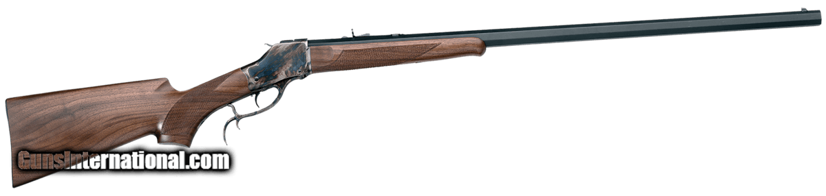 Description: Guns Listing ID: 95606 Among the rifles that have proudly descended from the legendary American late 1800 s, this classic High Wall single shot rifle is designed for long range target shooting. The Broached rifling barrel is made of high carbon steel in matte blue. The frame has a case hardened finish. It is equipped with a single set trigger. The pistol grip stock with checkered grip panels has the cheek piece and a large butt plate. The rifle is equipped with a Winchester type rear sight and a blade front sight, drilled and tapped to mount a suitable tang sight matched with a tunnel front sight. SOLD Manufacturer: TAYLOR‚‚S & CO Model: High Wall Caliber Info: .45-70 GOVT Condition: new Barrels: 32 BARREL |