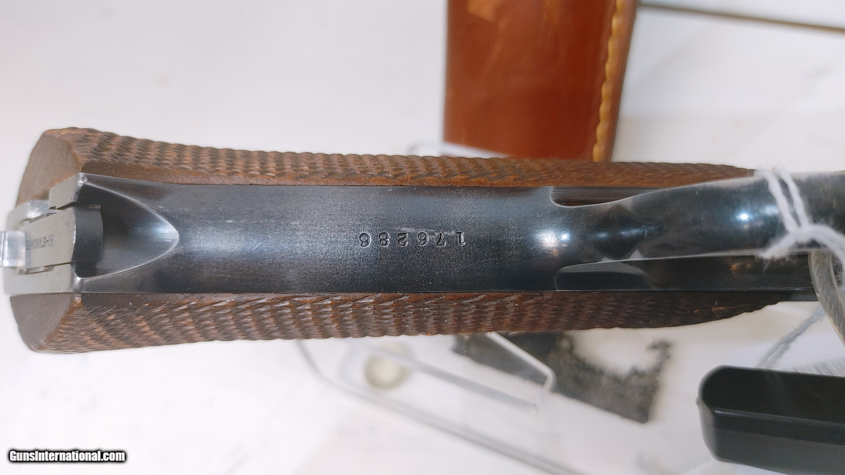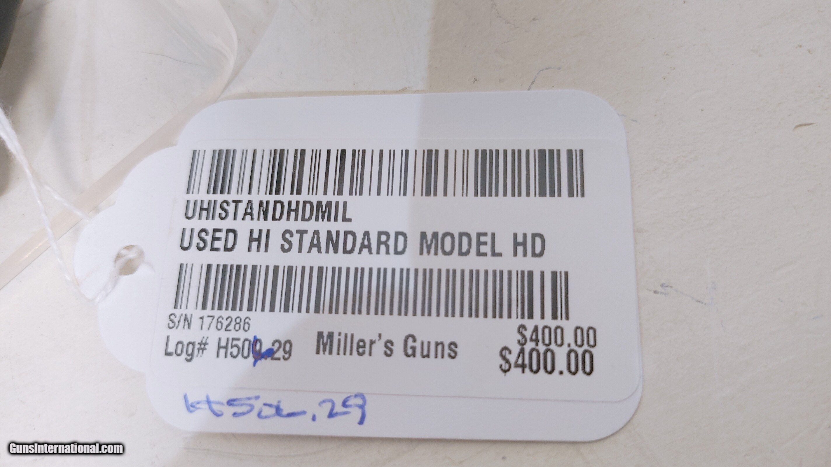 Description: used Hi-Standard Model H-D Military 22LR 7" bbl 1 original mag leather holster stamped 1210DB 6 3/4" good condition Buyer pays shipping Millers Gun Center Located in New Castle, Delaware "Home of TAX-Free shopping" No Credit Card Fees Send Gun international inquiry and then call 302-328-9747 to complete your purchase SOLD Serial Number: 176286 |