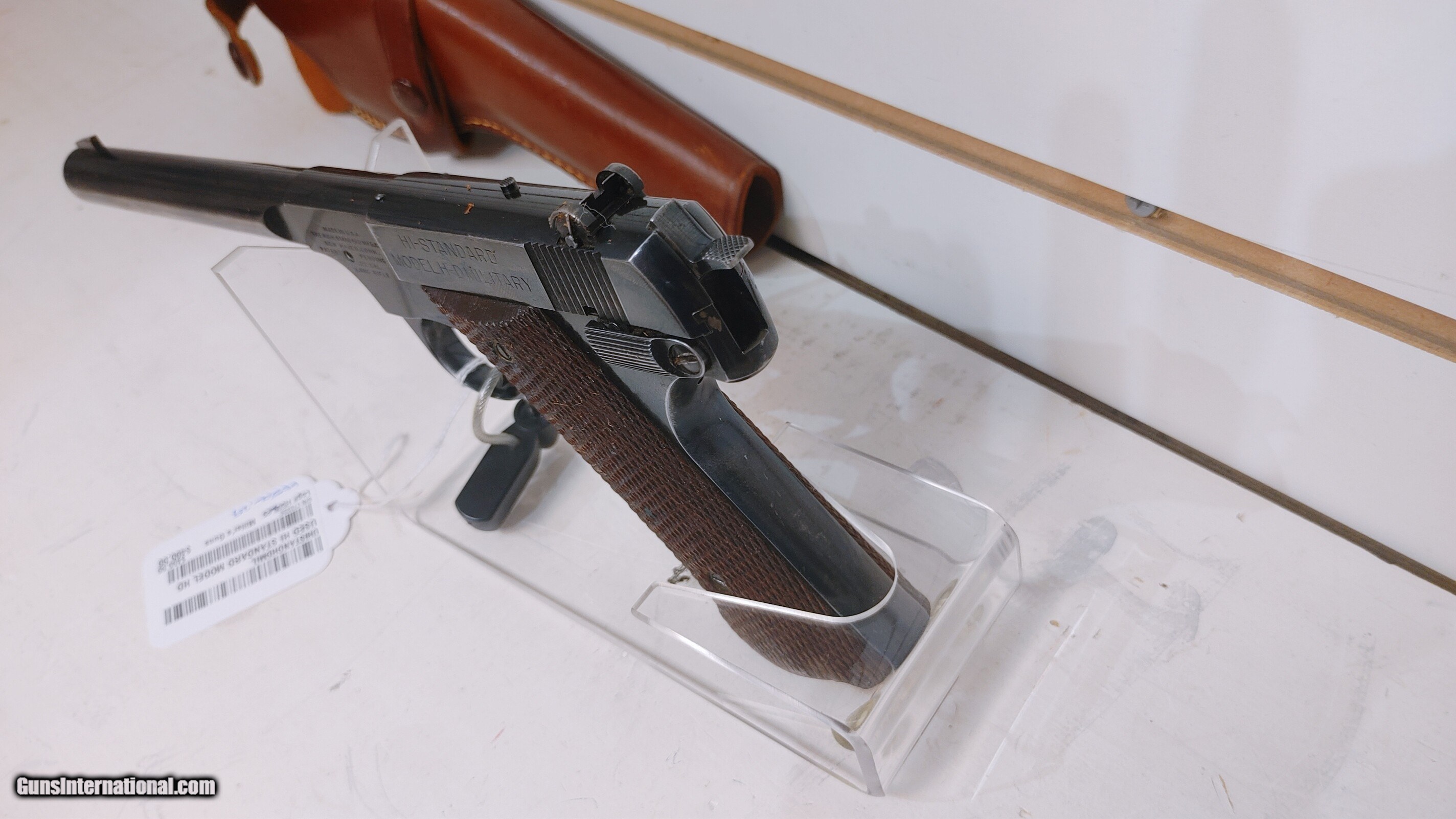 used Hi-Standard Model H-D Military 22LR 7" bbl 1 original mag leather holster good condition