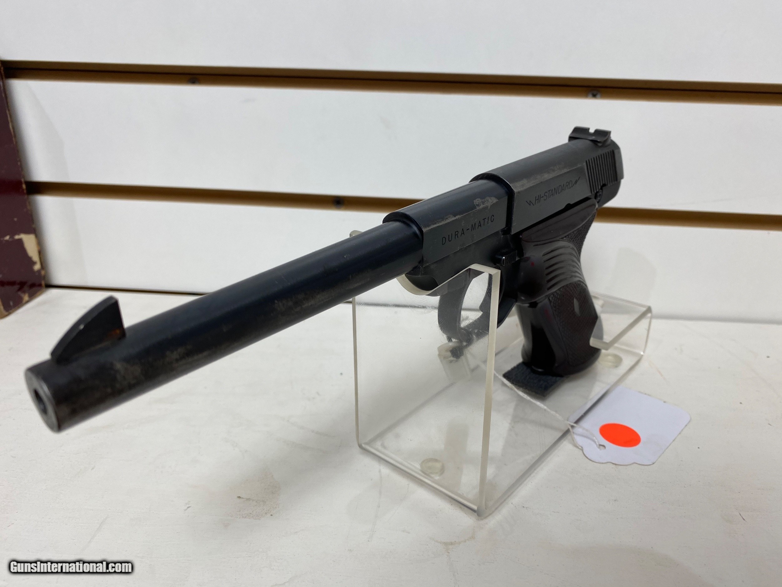Description: Used High Standard STD Duramat M-101 22cal original box good condition Buyer pays shipping Millers Gun Center Located in New Castle, Delaware "Home of TAX-Free shopping" SOLD Serial Number: 1208135 |