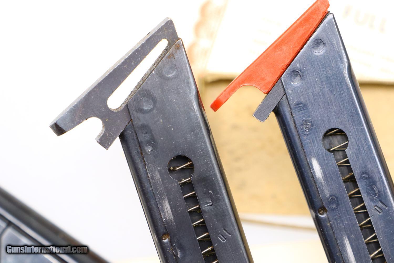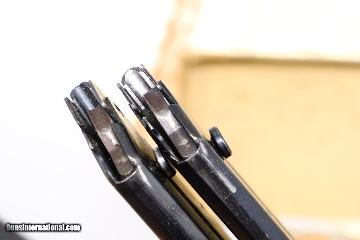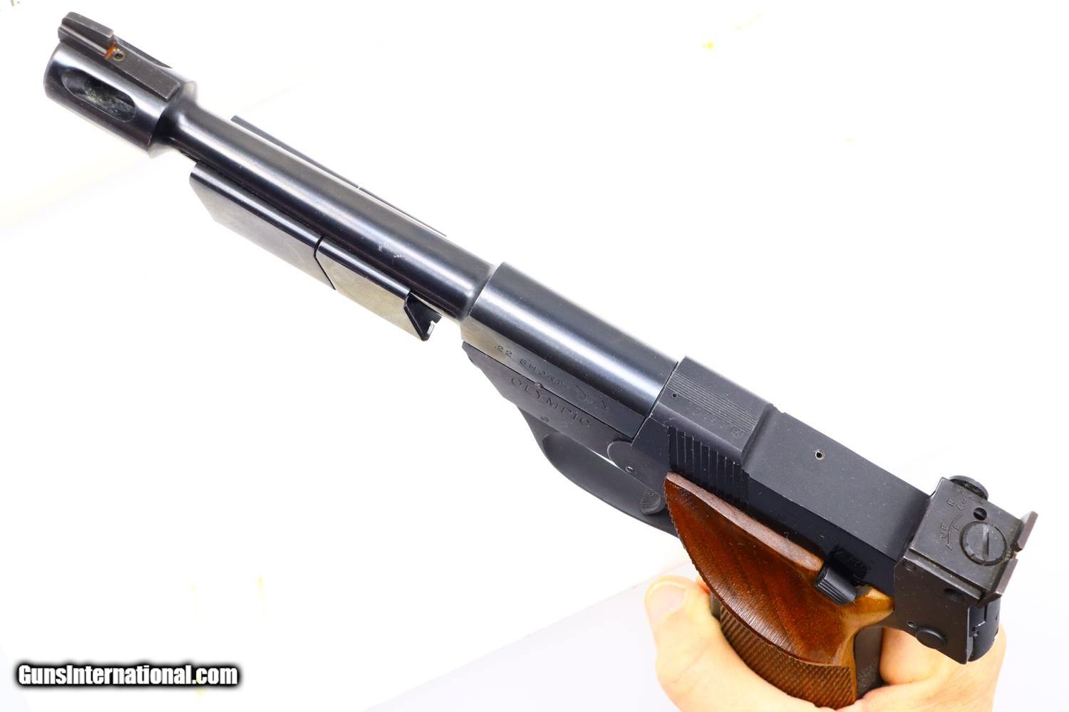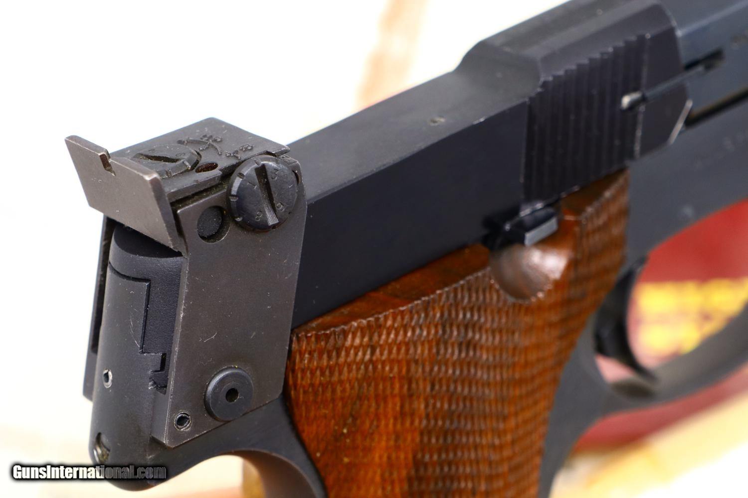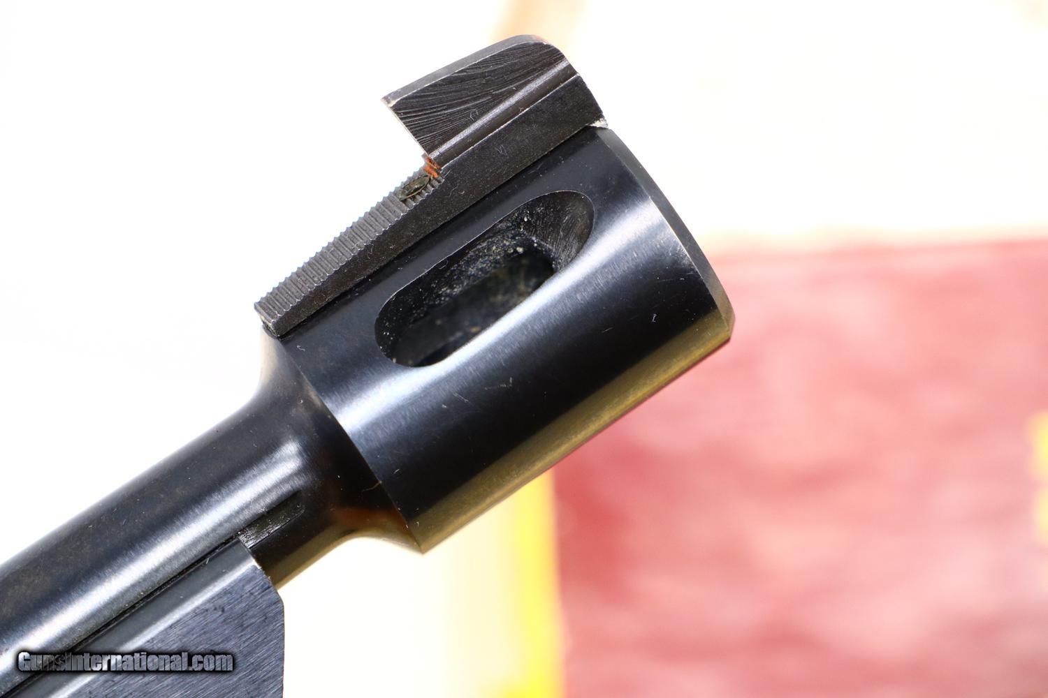 Description: Synopsis: Very Scarce High Standard, Military Olympic, Boxed, ML16742, FB01079, Description: This is one of the last Olympic variations made by High Standard between 1975-1980, one of only 298 guns, numbered in the military frame ML16644-ML25000 serial range, just before Hi-Standard did its final parts cleanup that morphed into the 1980 Olympic commemoratives. Very unusual to find one of these pistols, with its special thin counterweights and flat bases, complete in its original matching shipping box with styrofoam inserts, parts schematic and original warranty card that was never completed. Even better is that the shipping box was one of the early elongated versions that allowed space for an accessory Hi-Standard box, this example containing a spare .22 Short magazine with an unmarked metal floorplate. Condition: EXC with the front lower right edge of the alloy slide having been neatly deburred. Minor handling marks as one might expect from a high quality target pistol that has seen careful use. Mirror bore. Perfect manual mechanics. Associated shipping components in the same condition, though the base of the accessory box, holding the spare magazine, has begun to separate. A wonderful and complete ensemble reflecting one of the scarcest Olympic variations that should appeal to any High Standard collector and connoisseur of fine target pistols. ~~Insured shipping fee of $55; most packages shipped using FedEx 2nd Day.~~ SOLD Manufacturer: Hi-Standard Serial Number: ML16742 Caliber Info: .22 Short |