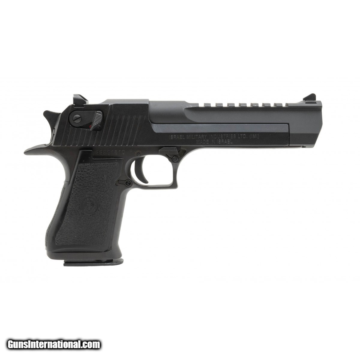 Description: " SN: 33201810. Modern Production. .50 AE with a 6"" barrel. Bore is excellent. Original Israeli Military Industries made single action large frame pistol. Comes with box, .44 Magnum barrel, (2) .50AE magazines and (2) .44 magnum magazines. Overall excellent condition. SOLD |