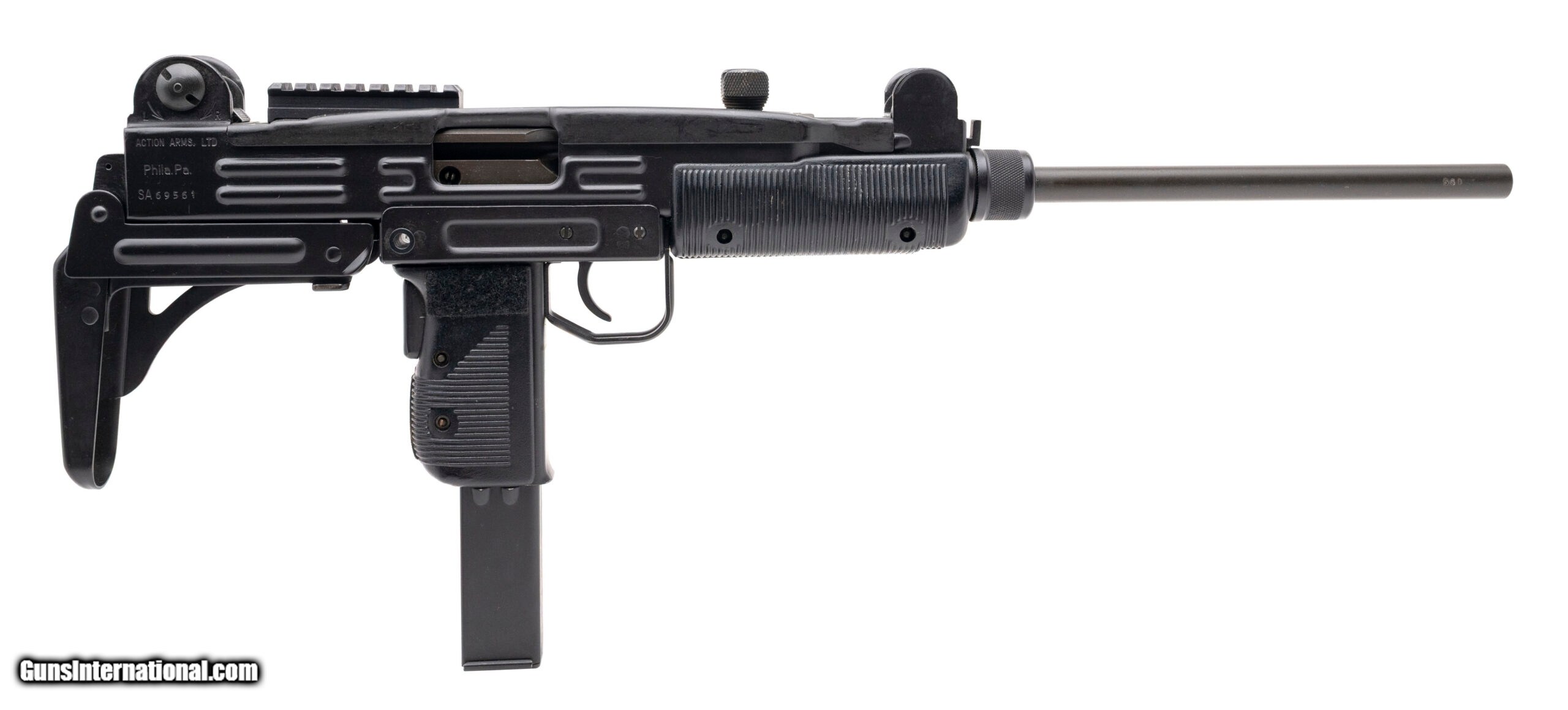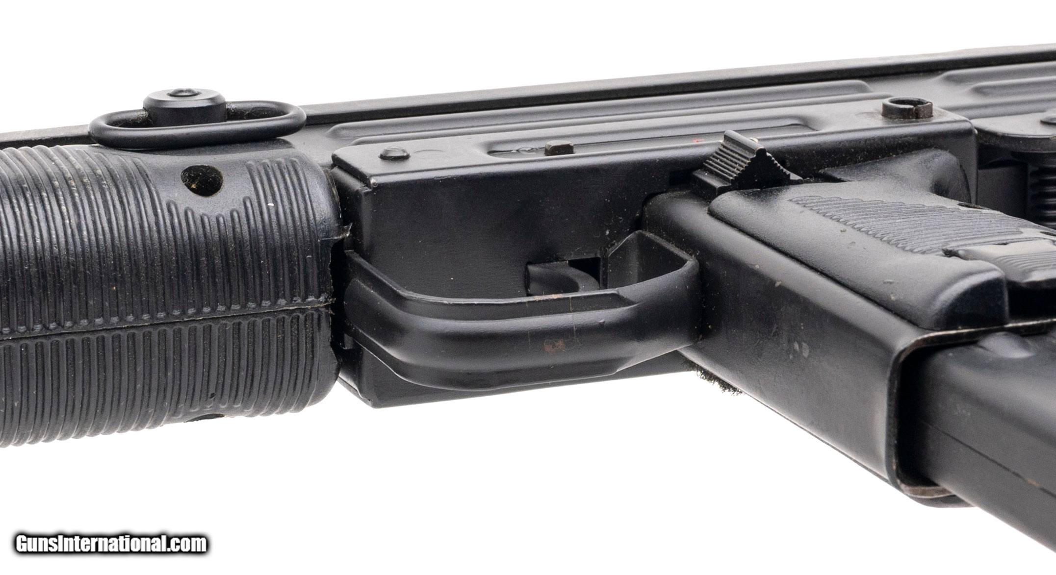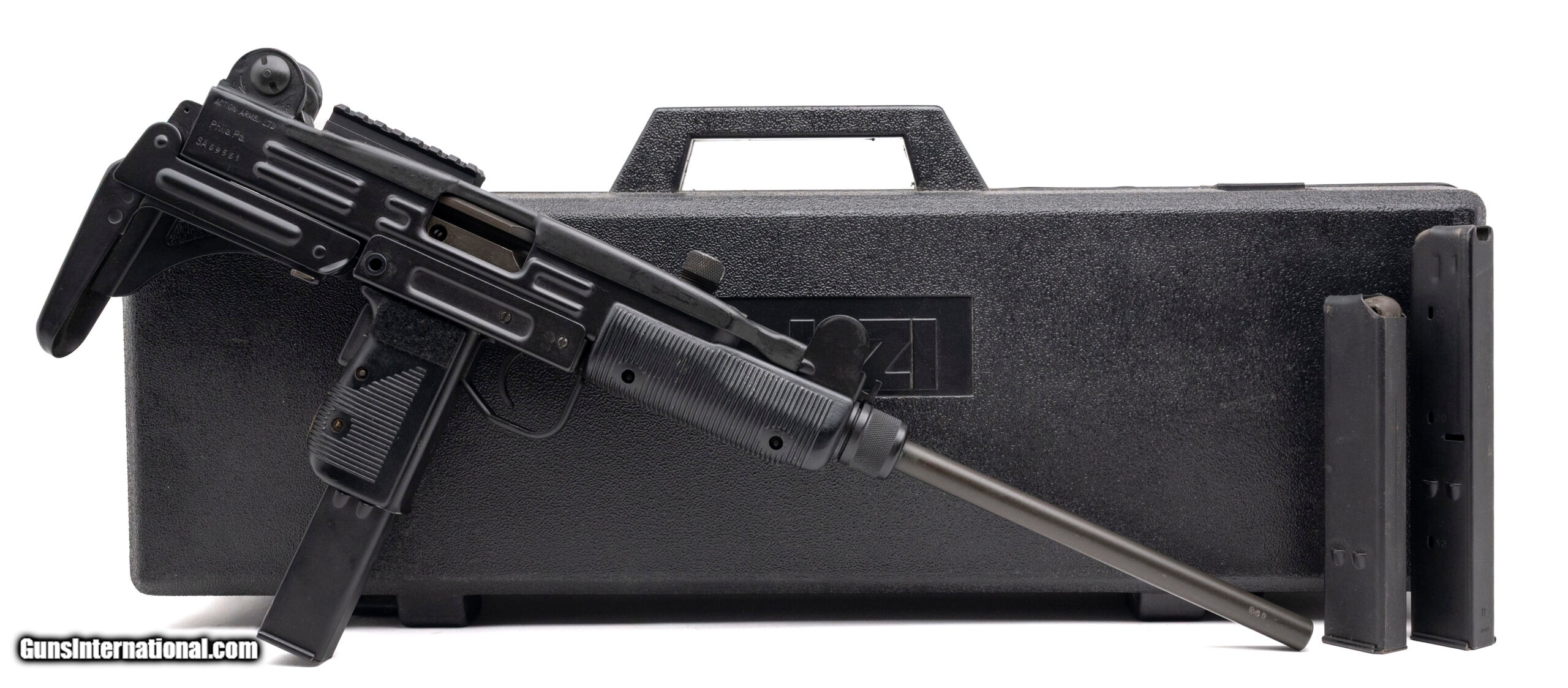 Description: "SN: SA69591. 1980s vintage, 9mm with a 16"" barrel. Bore is excellent. Pre-ban Israeli mad Pistol Caliber Carbine imported by Action Arms with a collapsible stock, bayonet lug, and matte black finish. Finish shows minor handling marks. Includes an additional 25rd & 32 rd magazine, faux barrel, sling, and original case. Overall condition is very good. Price: $3,000.00 Contact Seller |