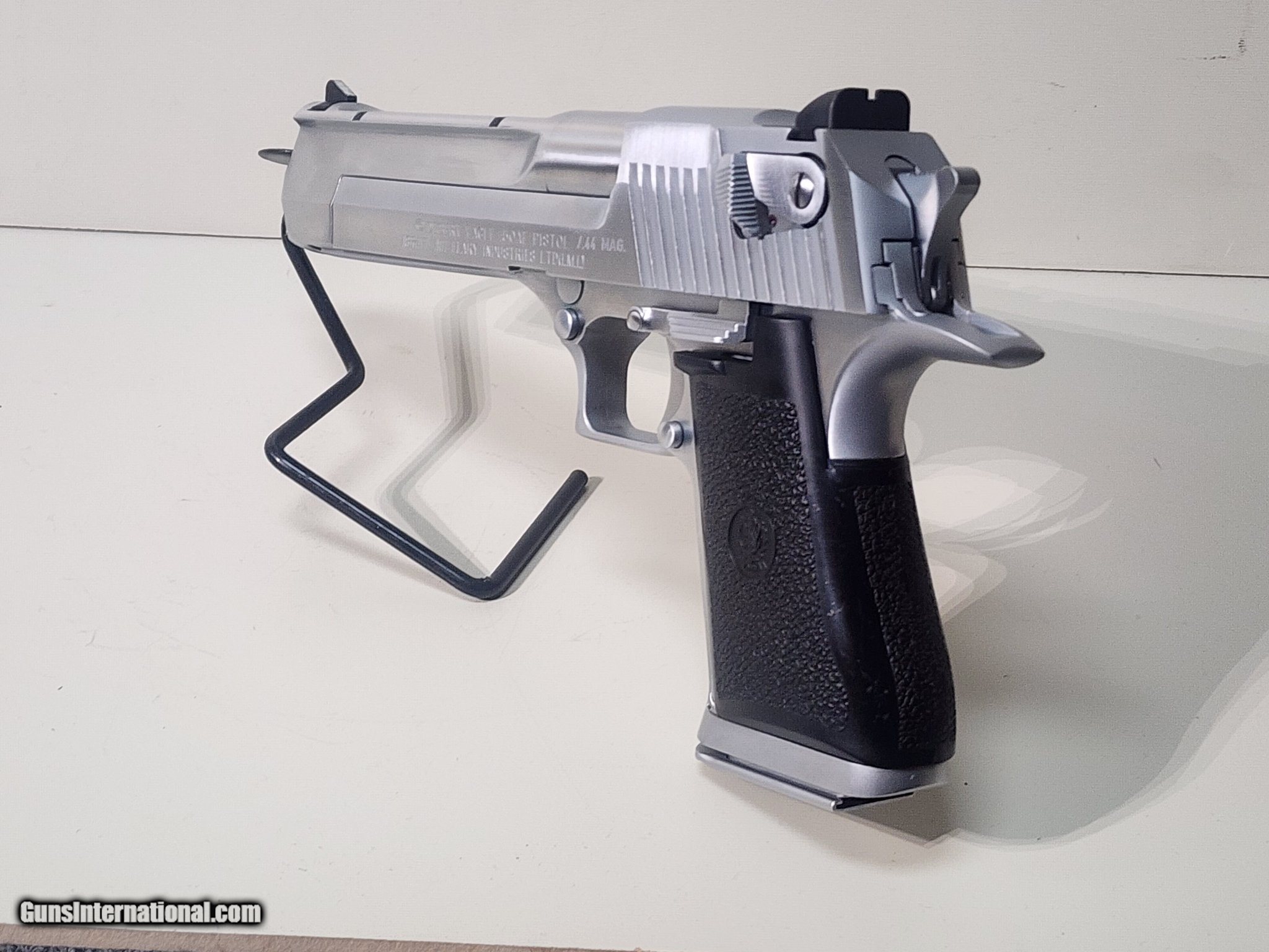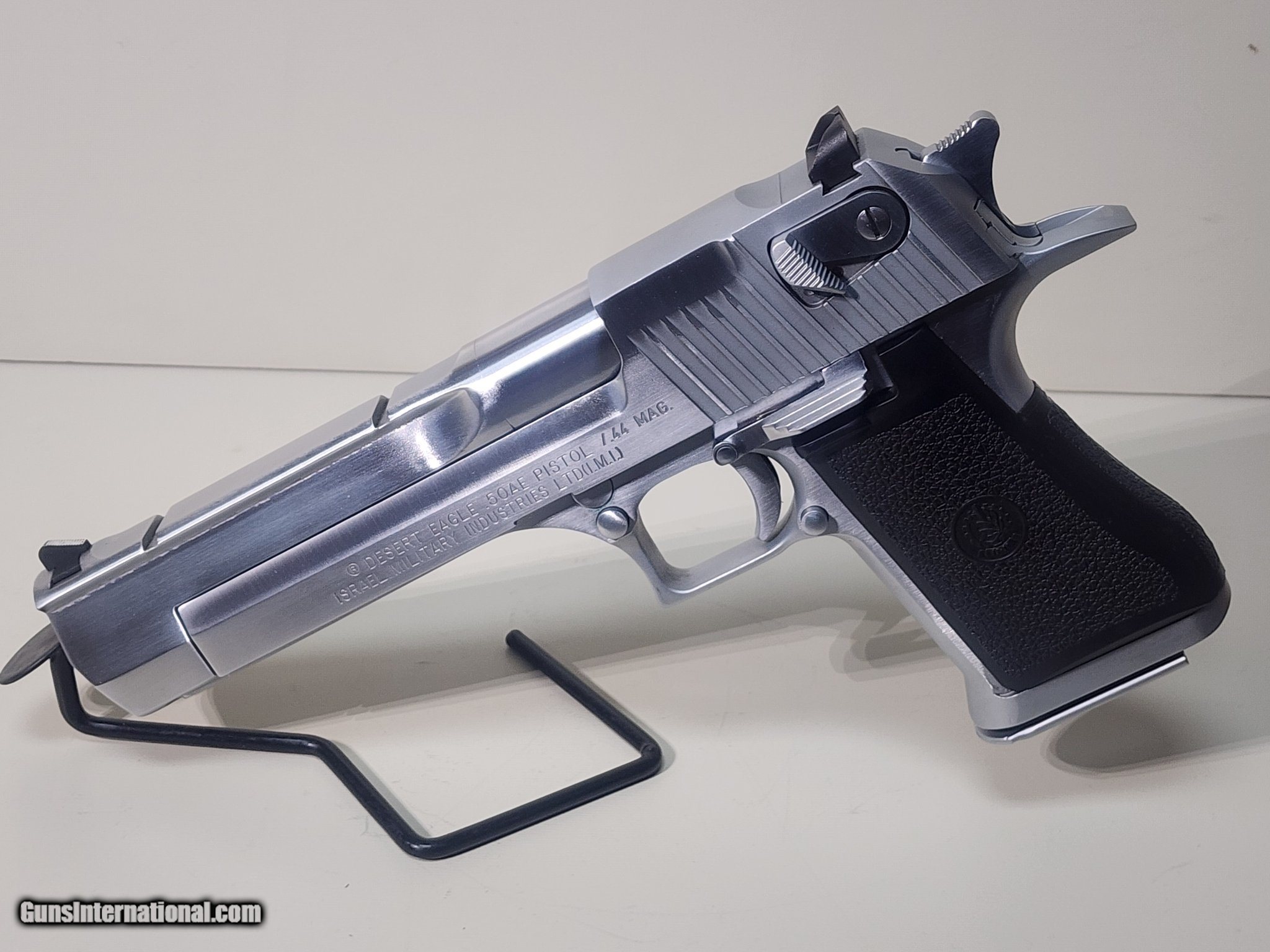 Description: Guns Listing ID: 1395909 Magnum Research Desert Eagle chambered in 50 AE with a 6\" barrel and a stainless finish. The gun is in good condition. This gun was made when Magnum Research was still Israel Military Industries and is stamped \"Made in Israel\". Comes with an 8-round magazine. SOLD Manufacturer: IMI Model: Desert Eagle Caliber Info: .50 AE Condition: Used - Non-Certified Barrels: 6 BARREL Finish: STAINLESS |
